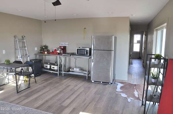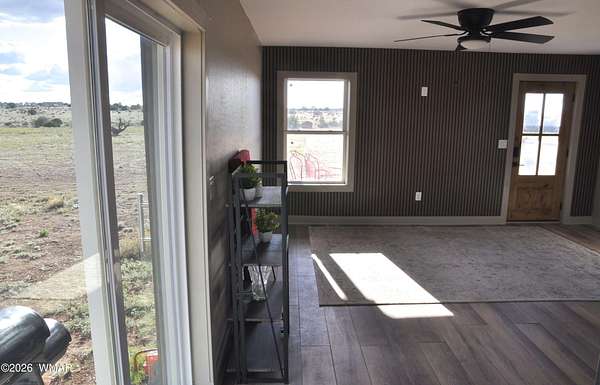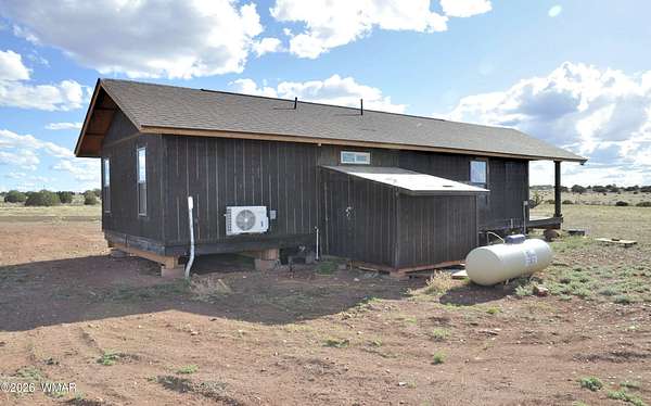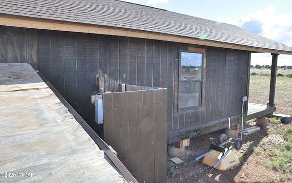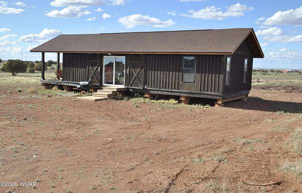 Cabin, new & comfortable, on 29.39 ac on paved road. Well set up w/public power & private well into the Coconino Aquifer, providing good, abundant water. The well is set up w/solar power, collecting water in a 3000 gal holding tank. Well reg # is 55-925045 (see info under docs) The property is completely fenced, keeping the cattle out. 9x40 steel Connex container conveys...providing secure storage. Many animal pens & garden areas w/drip systems. Cabin well insulated, with 2x6 walls. Front deck covered to enjoy the expansive land from. Crawl space under the home for ease of access. With all the elbow room & ease of paved access to town...makes this a desirable property. Appox 15 min to Snowflake and 35 min to Show Low. For heat and cooling there are 2 mini splits plus a propane wall unit... heater, keeping the home very comfortable. Kitchen needs to be installed. Owner may carry at $285K, with large down, depending on terms.