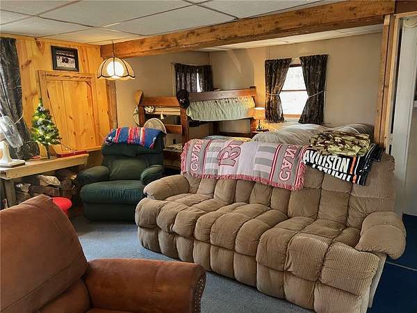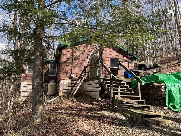 NEW PRICE! This 1 bed/1 bath property is located on 3.3 acres in Birdsall NY. Large circular driveway leads to a serene cabin surrounded by trees. Enjoy the view from the deck. There is also a newer large shed for extra storage! Cabin has a dug well, both wood stove and propane heater, electric, no septic. Cabin has been re-leveled with pressure treated timber. Metal roof 7 years old, hot water tank 2015, well pump 2015. Plenty of extra sleeping space in the main living area. This property is being sold "As-Is" with all contents included. Located near state land, Swain Ski Resort, Birdsall Inn, the Maple Tree Inn, Stonybrook State Park. Perfect for the avid hunter or a great getaway.