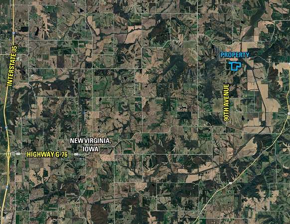 From New Virginia: Take Highway G-76 East 5 miles to 90th Avenue. Go north on 90th Ave for 2 miles to Stone Street. Turn right and go East on Stone Street a 1/4 mile. The property is on the North side of the road at 9267 Stone Street, New Virginia, IA.