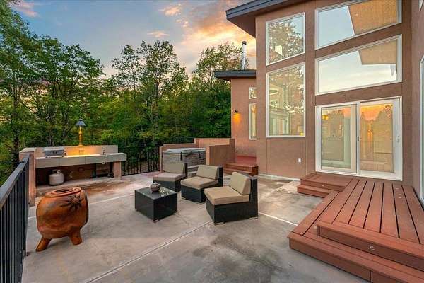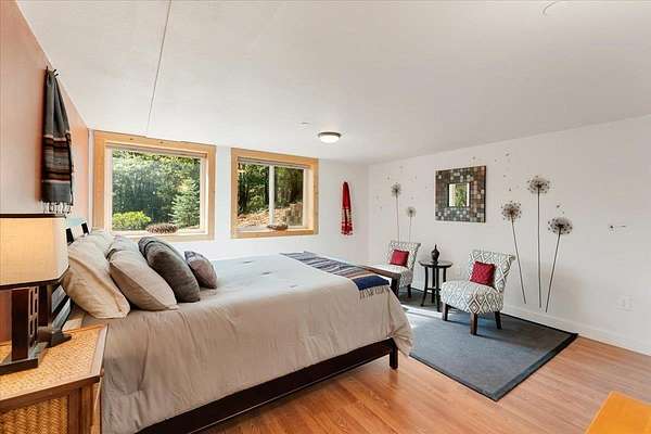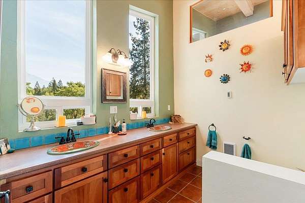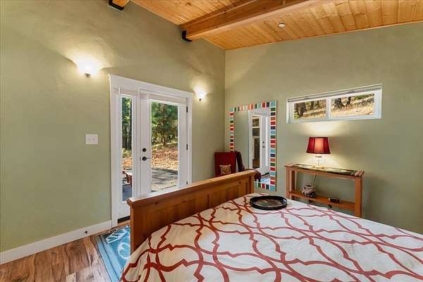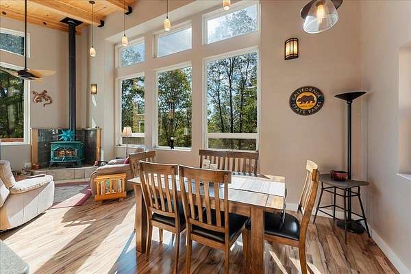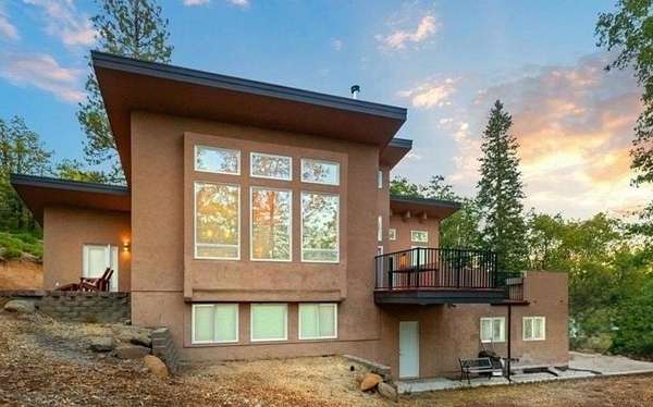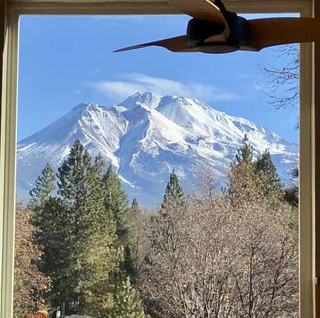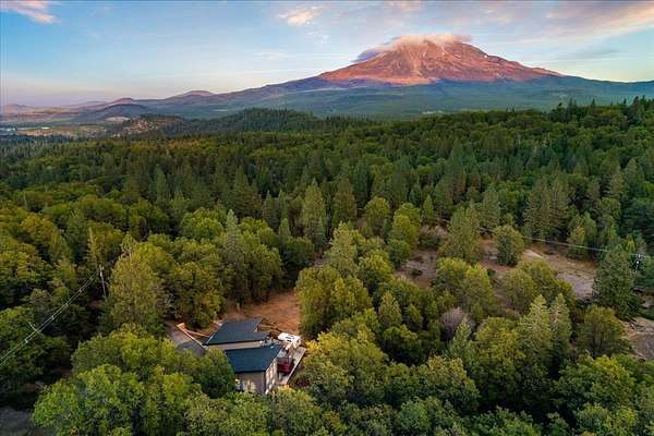New List Price! Prepare to fall in love with this contemporary stunner on 5 acres! Surrounded by nature, but less than 10 minutes to the store, this house has approx 2550 sf of beauty and detail, featuring a gorgeous view of Mt. Shasta. Architecturally designed, passive solar construction and less than 10 years old, this home boasts 4 bedrooms, 3 full bathrooms, vaulted 20-foot knotty pine ceilings, massive beams, spacious windows, TWO two-car garages, and extensive storage. 2 bedrooms, 2 baths, great room and kitchen are located on the main level,with its own driveway. On the lower level, via interior stairs, are 2 more bedrooms, a full bath and the garages. You’ll be kept cozy with a beautiful enamel wood stove complemented by two mini-splits, and hydronic heat in the lower rooms. State-of-the-art construction creates an extremely fire-resistant home with highly rated insulation. Soft-close kitchen cabinets, mood lighting, custom cherry cabinets in primary bath and office, walk-in pantry, outdoor kitchen and light-filled rooms make this home a delight to live in. Imagine yourself relaxing on the 700 sf deck while taking in the view and calling this beautiful home yours.