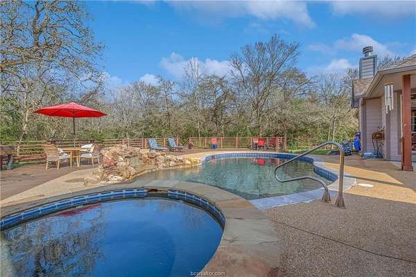 This beautifully crafted 4-bedroom, 3-bath country-style home sits on 2.06 acres of peaceful land, offering both privacy and natural beauty. Inside, you'll find warm wood wall accents throughout, enhancing the rustic charm of the space, along with a striking stone fireplace that serves as the heart of the living area. The open floor plan offers a seamless flow between the kitchen, dining, and living rooms, complete for family gatherings and entertaining. For added convenience, there's a dedicated home office space, ideal for remote work or quiet study. A formal dining room provides an elegant setting for hosting meals and special occasions. Step outside to your own private retreat, featuring an inviting in-ground pool and hot tub, perfect for relaxing year-round. The expansive covered deck offers ample space for outdoor dining, lounging, or simply soaking in the surrounding views of large, mature trees that provide both shade and seclusion. The property is surrounded by nature, giving you a true sense of tranquility and escape. A 2-car detached garage adds convenience and storage space, completing the package. This home is the flawless blend of country charm, comfort, and modern amenities, making it a truly special place to call home.