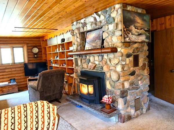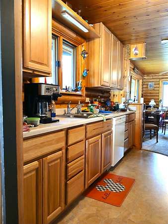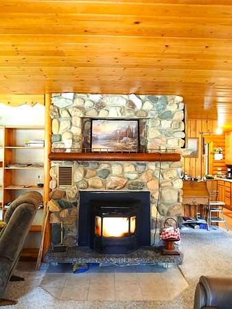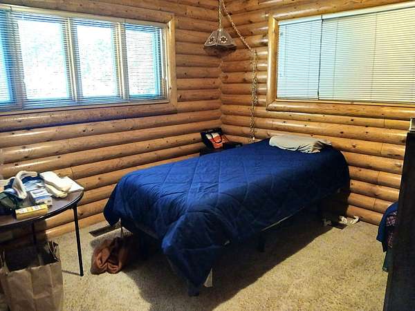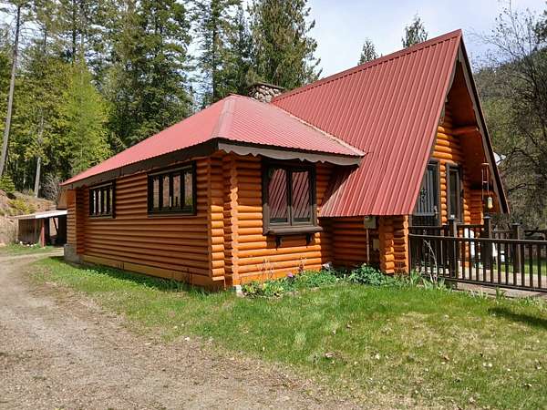 Est $2,186/moChalet Style Log Home features 2 bedrooms, 1 bath with river rock fireplace and pellet insert to heat the home. Park like setting and bordering state and forest lands. Beautiful mountain views. Circular driveway to 2 car garage with full finished apartment above and another camper for sleeping room for guests. 30 x 40 shop with 12 ft and 8 ft doors and concrete floor. Lots of timber on the hillside above. Storage in attic of home and nice large crawlspace below living area. Neubeam cable internet is along Aladdin hwy below.