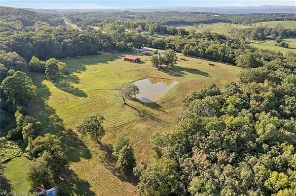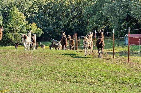 In the Heart of Arkansas discover a stunning 36+ acre farm offering a rare blend of natural beauty & heritage complete with a 1,900 sq ft home, 40x50 shop with 3-phase electric, 40x60 barn with 200-amp service & a fully stocked pond. This beautiful property features open gently rolling pasture surrounded by a 9 acre wooded ridge creating privacy. Currently operating as a llama farm this versatile property is ideal for grazing livestock or future development & previously supported 30 head of cattle. Perfectly suited for cattle operation horse farm or mixed-livestock setup. With abundant pasture & multiple water sources the land is ready for those looking to raise livestock,enjoy recreational outdoor life, or invest in future development. 1,900 sq ft home offers 3 bedrooms, 2 full bathrooms & a second living room creating a warm spacious layout. Gas fireplace is vented throughout the home to keep you warm all winter long.Home updates include:metal roof, HVAC system,dishwasher, vinyl plank flooring & a large concrete patio- perfect place to enjoy both sunrise & sunset views across the rolling landscape.Property includes: 40x50 shop w/ 3-phase electric & 12" concrete floors,40x60 barn- 200amp feed, tack room,12 stalls & mounted fans.