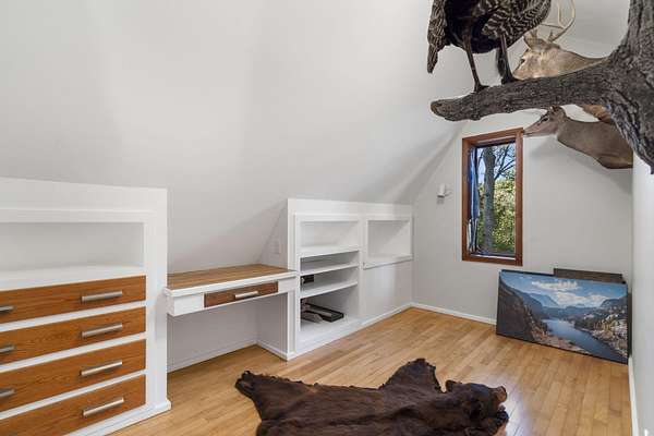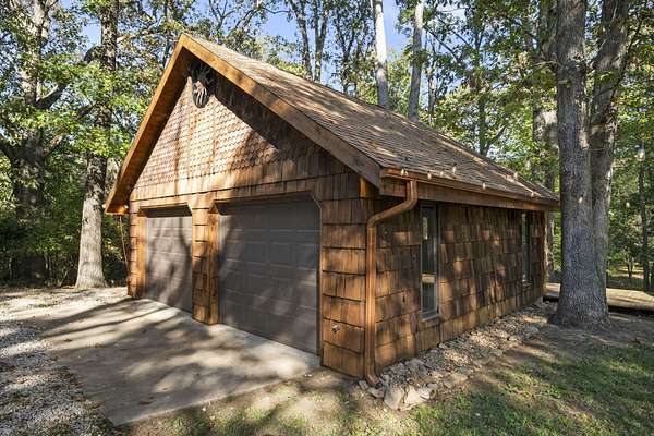 Tucked among the trees and surrounded by nature's changing colors, this cozy cabin offers that perfect blend of rustic charm and modern comfort. Sitting on 1.7 wooded acres just minutes from town, it's the kind of place where you can sip your morning coffee on the porch and watch the fall leaves put on a show. Inside, you'll find three bedrooms and two full baths, including a spacious primary suite on the main level. Downstairs, a basement garage and workshop provide space for hobbies, storage, or future finishing projects, while a detached two-car garage adds even more flexibility. This home has a character all its own--warm, inviting, and ready for you to make it yours. If you've been dreaming of a little cabin-in-the-woods lifestyle without giving up convenience, this one checks all the boxes.
