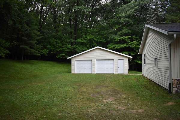 Central WI hideaway! Located at the end of this quiet country cul de sac, awaits this hidden gem. Nestled on 43 beautifully wooded acres, this 3 bedroom home is the perfect setting for country living. Incredibly well maintained over its time, this property offers a gorgeous main level brick fireplace with convenient wood storage access from the garage, spacious kitchen with sliding glass doors leading to the new back yard deck. Main level bath on one side of the home with an additional half bath and laundry area on the opposing side. Quiet family room behind the garage allows for additional living space and possible office area. Full basement with high ceilings and a brand new hot water heater. Lower level features over 1500 square feet of space ready to be finished off however you desire. Home is served by municipal sewer and private well.