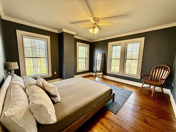 Step into the perfect blend of classic farmhouse charm and modern luxury in the Village Business District allowing a variety of uses! This beautifully renovated home just a short walk from the historic Lebanon Green. Attached 6 Bay Garage with finished 2nd floor! The farmhouse style kitchen is the heart of the home, showcasing granite countertops, a spacious pantry, radiant floor heating, and custom cabinetry-an ideal space for cooking, gathering, and entertaining. The kitchen flows into an impressive great room featuring custom sliding barn doors, cathedral ceilings, exposed beams, rich wood flooring, and heated floors for year-round comfort. A massive slider opens to the patio, creating an effortless indoor-outdoor lifestyle. Convenience meets craftsmanship in the spacious mudroom with custom built-ins and a first-floor laundry room. The main-level bath offers a gorgeous, oversized walk-in shower, surrounded by exceptional trim work and thoughtful finishes throughout the home. French doors add elegance while drawing natural light into every corner. This home is as functional as it is beautiful, offering modern mechanical updates including mini splits, newer dishwasher, updated electrical panel with generator switch, generator, new well pump, pressure tank, and insulated window inserts for energy efficiency and comfort. A rare opportunity to own a farmhouse that blends timeless style with top-tier upgrades-all within walking distance to the picturesque Lebanon Green