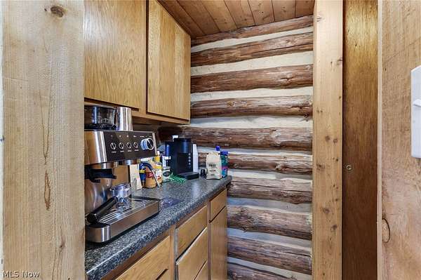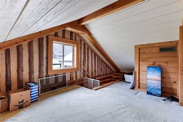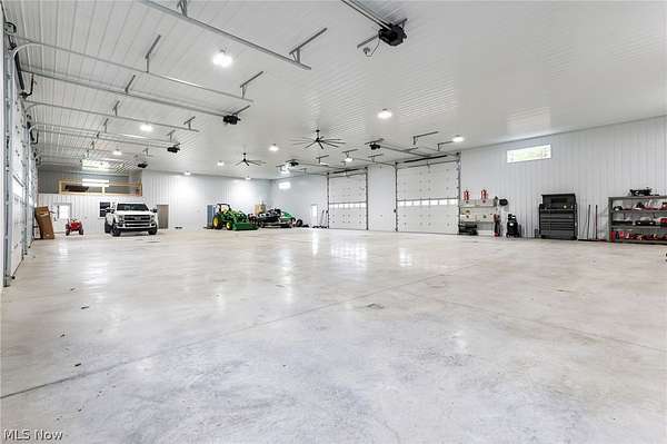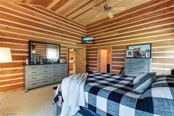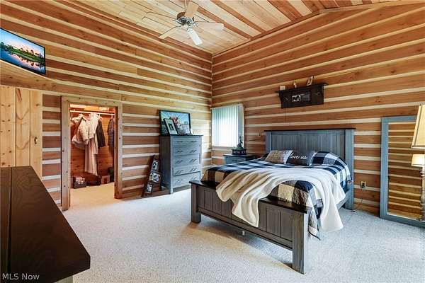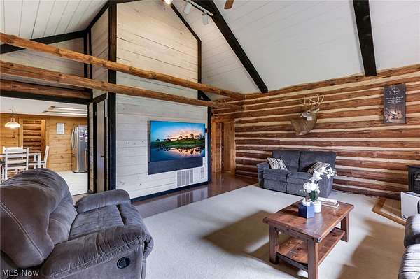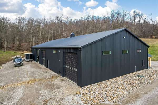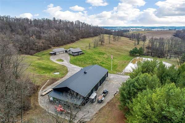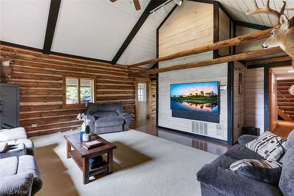 Experience the charm of country living with this beautifully constructed log home set on 54.68 tranquil acres in picturesque Licking County! Admire the stunning views of gently rolling landscapes, a stocked pond, flourishing mature woods filled with wildlife, and established trails right at your doorstep. This remarkable home boasts a spacious screened porch, perfect for a peaceful escape. Recent improvements include a freshly painted exterior, a whole-house generator, metal roofs, a newer hot water tank, updated flooring in the first-floor bathroom, and a modernized kitchen. Revel in the vaulted great room with a cozy wood-burning stove, as well as an exceptional first-floor primary bedroom featuring a 12-foot ceiling and a private attached screened porch. For convenience, there are two laundry areas and a finished lower level. The truly impressive garage measures 60 x 120, complete with radium heat, seven 14 x 14 garage doors with openers, three pedestrian doors, and a 20 x 20 office, plus a 20 x 40 wash bay and 20 x 20 loft. The driveway has also been asphalted. This property is a must-see to fully appreciate!