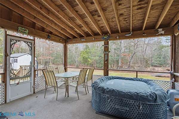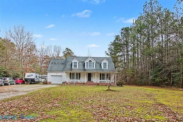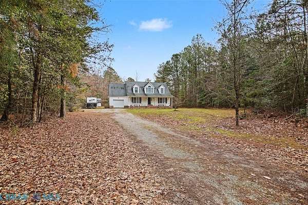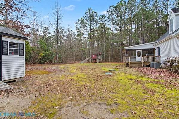 5 acres of wooded privacy! Quiet lane located only minutes from Gloucester Courthouse area. Outdoor lovers can enjoy wildlife from your country front porch, or from your large rear screened porch. There is an attached garage, a storage shed and a playhouse with zip line. Inside enjoy the free flowing floorplan that starts with the living room which has a cozy fireplace and looks over into the large dining room area. You can access the large screened porch and open deck from both dining area and kitchen. The kitchen offers plenty of counter space, lots of cabinets for storage, a bar to sit at and stainless appliances. There is a half bath as well as laundry room on the first floor. The primary bedroom (also on the first floor) has a walk in closet as well as full bath. Upstairs enjoy 2 bedrooms that share a full bath, a well lit office area as well as a finished bonus room over the garage that could be a 4th bedroom. Close to town yet 5 acres of privacy.