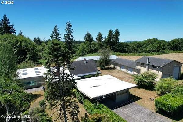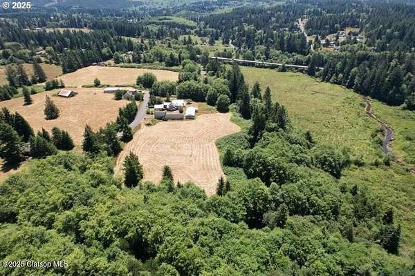 A rare gem nestled in the heart of nature-a stunning mid-century contemporary home offering 4 bedrooms and 2 baths, sprawling over 2,500 square feet. Set on a breathtaking 31.94 acres this country homestead/Ranch is predominantly adorned with lush forests six tax lots; this property is a sanctuary for those seeking peace and tranquility away from the hustle and bustle of city life. As you approach this serene country homestead you will be greeted by the sights that call this remarkable landscape home. The expansive grounds provide ample opportunities for agriculture pursuits or simply enjoying the great outdoors. Whether you're dreaming of owning a horse or farming, this property is perfectly suited to accommodate your aspirations. The residence itself boasts an inviting layout filled with natural light and modern comforts. The open concept living area seamlessly flows into the dining space, ideal for entertaining family and friends or enjoying quiet evenings at home. The added bonus of a full-sized enclosed pool room to swim and relax with a full-size sauna. In addition to the main house, you'll find a large outbuilding/shop complete with a loft and three bay doors-perfectly designed for housing boats or RV's accommodating farm animals or serving as an ideal workspace for any farming business or complete as an ADU. A second large shop provides additional storage options or could be transformed into a woodworking haven. Completing this extraordinary property is attached garage featuring an attached carport-convenience at its best! Imagine sipping your morning coffee while surrounded by nature's beauty, here every day feels like a getaway. This one-of-a-kind opportunity awaits those who appreciate both serenity and functionality in their lifestyle. Don't miss out on making this peaceful haven your forever home! Schedule your private tour today to experience firsthand all that this unique property has to offer-your dream country lifestyle is just around the corner!