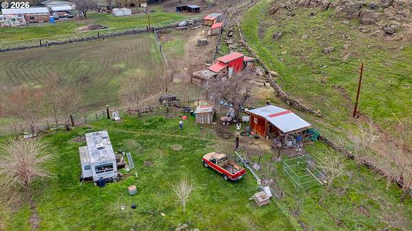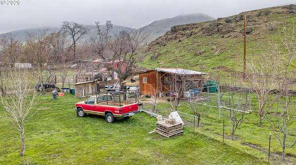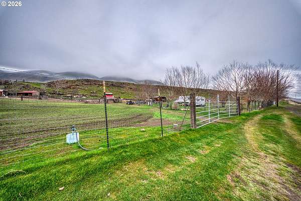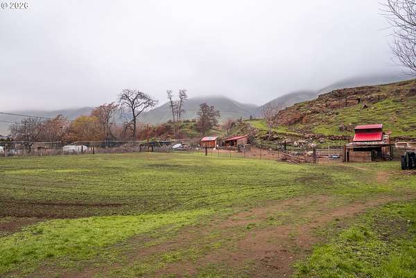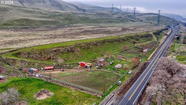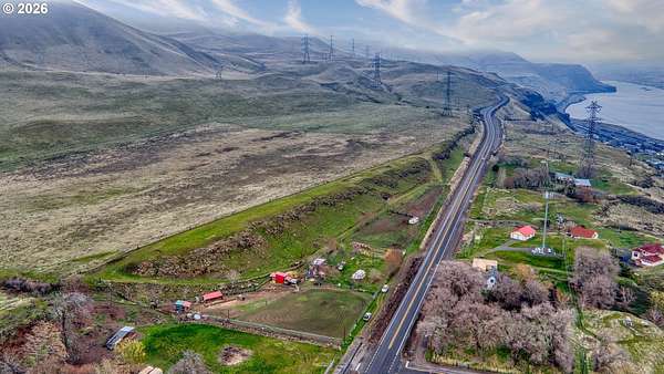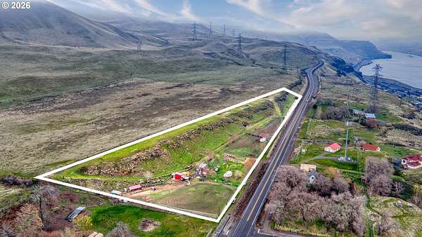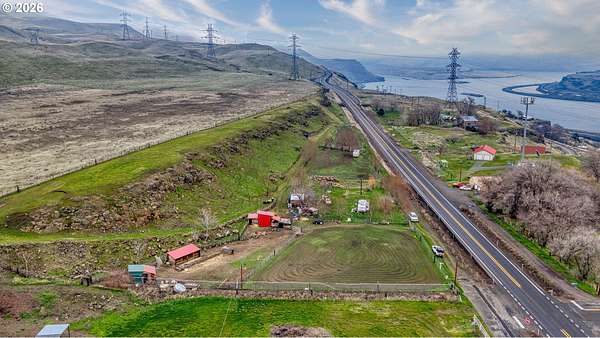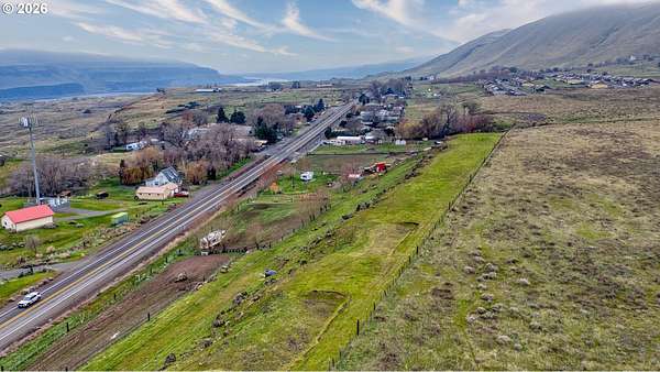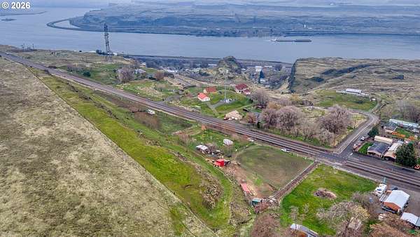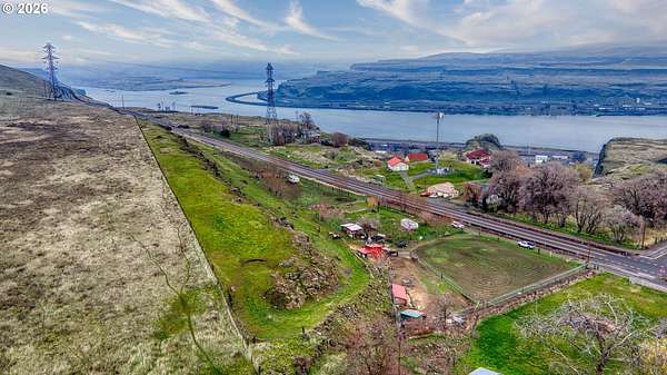 Exceptional opportunity to own 7 acres of RC-zoned land with significant development potential. This unique property offers remarkable, expansive Columbia River Gorge views and is not located within the Gorge Commission, allowing for added flexibility and fewer restrictions. Public water and sewer are connected, electricity is available on the lot, and access roads are in place providing convenient access to the upper portions of the property. The land benefits from direct access off Highway 14, offering both ease of entry and strong accessibility.The property includes two wells (no pumps in place), irrigation spigots located throughout the property, and the entire acreage is fully cross-fenced, making it well suited for agricultural or livestock use. A small recreational structure is present with a bed, toilet, and sink, ideal for temporary use while planning future development or enjoying the land. Additionally, insulated sheds are on-site to help protect livestock and feed. With infrastructure in place, scenic surroundings, and favorable zoning, this property presents an excellent opportunity for residential, agricultural, investment, or development use.