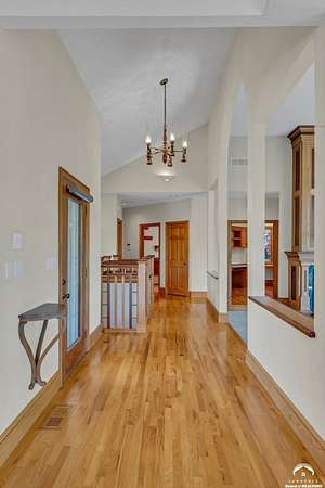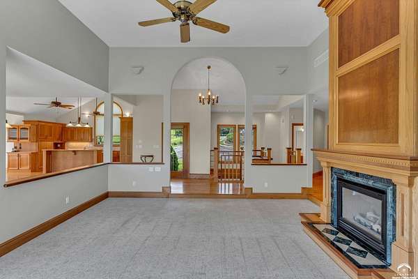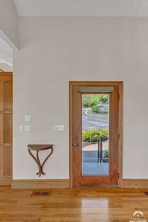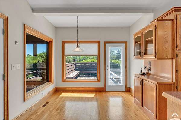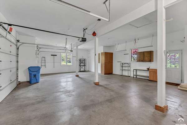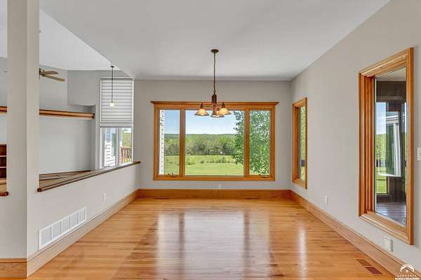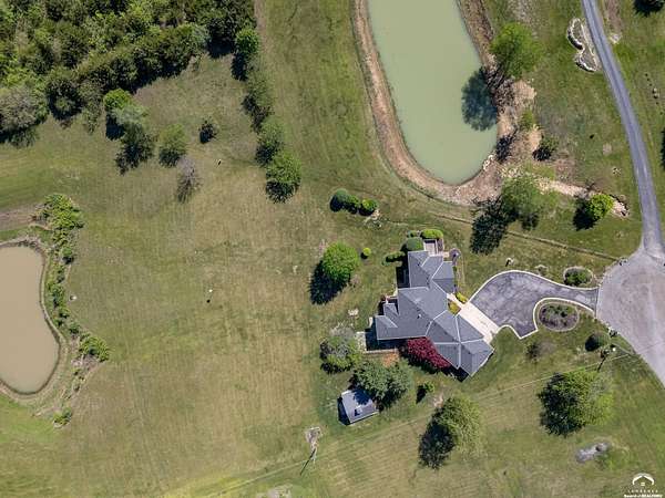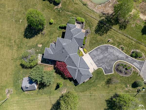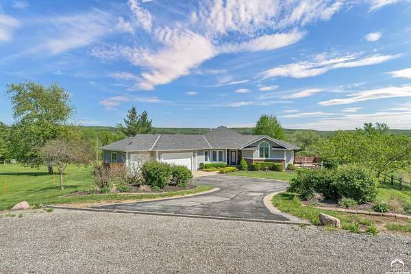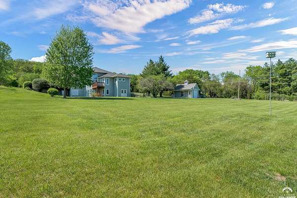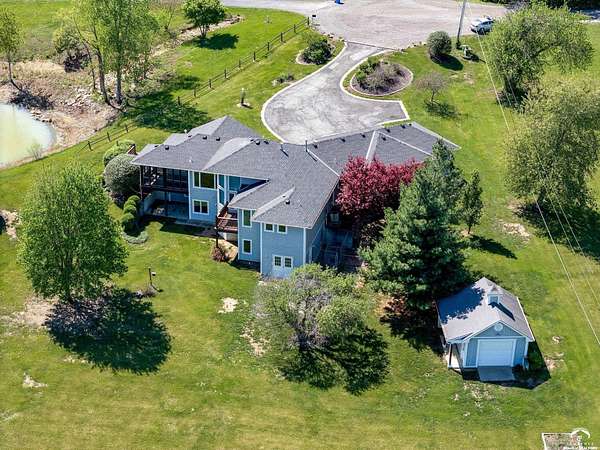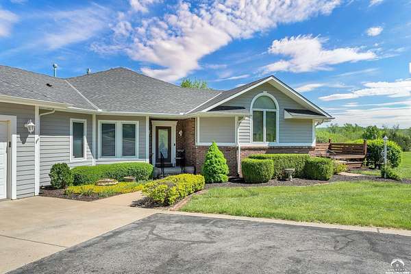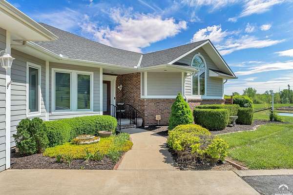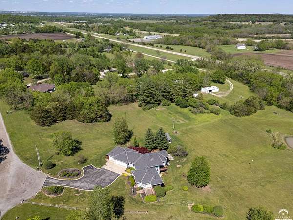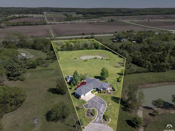 Enjoy peaceful country living just south of Lawrence on 5 scenic acres! This custom-built home showcases beautiful woodwork and quality craftsmanship throughout. The spacious, open main level is filled with natural light from large windows that capture stunning views in every direction. Relax and unwind in the inviting three-season porch, perfect for enjoying the outdoors year-round. The walkout basement features a large family room-ideal for entertaining or gathering-along with plenty of unfinished storage space for all your needs. Outside, you'll find a pond, wide open space to roam, and a large tool shed for hobbies, equipment, or extra storage. A fantastic opportunity to own a cared for home with room to breathe, just minutes from town!