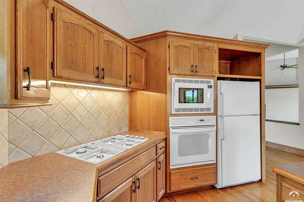 - Dishwasher, Disposal, Gas Range, Microwave, Refrigerator, Wall Oven