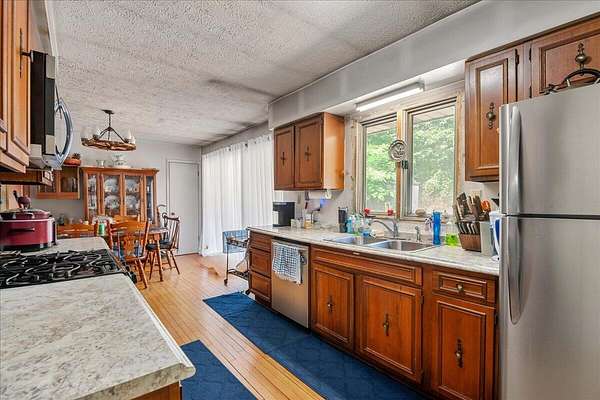 Welcome to a rare opportunity in southeastern Kentucky! This remarkable 100+ acre property combines cleared hay fields, wooded trails, and a well-stocked fishing pond-all just 8 miles from Corbin or Barbourville. The land comprises 27 acres of active hay fields, some fenced areas and offers the perfect setup for homesteading or off-grid living, complete with a gas well (free gas) and excellent well water already connected (public water also available). The spacious 2,450 sq ft brick home features, a huge family room, all stainless steel appliances and a unique touch-reclaimed hardwood gym flooring from Transylvania University. The home also has a basement providing room to grow. As an additional bonus an older home is on the property and could be used as a second home or rental with a little TLC. Owned by the same family since 1811, this land is rich in heritage and possibilities. Don't miss out on this one!