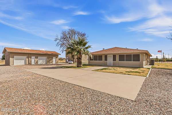 Hard to find AMAZING horse property! Tremendous home extremely well cared for by current owners in Chaparral New Mexico 88081 (Otero County)! Trees, grass, shrubs, garden, are all on irrigation system. This beauty is a 3 bed, 2 bath, 1680 Sq Ft, refrigerated air, fireplace, electric remote gate, and tons of other features and upgrades. The home sits on over 1.26 acres and has another 1.26 acres with water and electric on street ( different parcel) right next door perfect for expansion or to build another home right next to it. Total acreage is a little over 2.5 acres of prime New Mexico land! Bring your horses and chickens as they are allowed and the 8 horse barn can easily accommodate! This awesome property also has a big workshop for all your projects or toys. Yes you guessed it, the home has a separate studio upstairs in the garage area approx. 576 Sq Ft! (Heated and cooled!) Please make sure to come out and see this one of a kind property before its GONE!!!