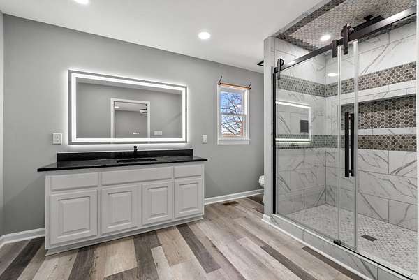 Inside, the home has been extensively renovated with a brand-new kitchen, new flooring throughout, and updated bathrooms. The modern touches continue with new lighting, a new roof, and more. The spacious layout provides the perfect setting for family gatherings or quiet evenings.