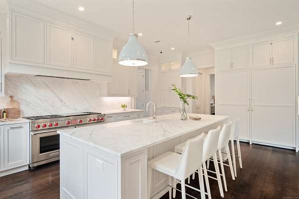 BRAND NEW CONSTRUCTION completed on 11/15/25. IMMEDIATE OCCUPANCY. The Ultimate Compound! Exceptional new construction by custom home builder, Woodcrest Homes. Ultra-Prime West Road Location on 6.5 flat & dry private acres with room for a Pool, Pool House, Sports Court and Guest House (with special permit application). Seven ensuite bedrooms, transitional style throughout with beautiful finishes & clean lines. Four fireplaces with a wonderful flow & generously proportioned rooms. Glorious primary suite with stunning bath including radiant heat floors & cathedral ceiling. Paneled library, custom millwork throughout, bright chef's kitchen with adjacent breakfast room, family room with coffered ceiling, finished lower level and 3rd floor, large mudroom with radiant heat floors. Elevator to all 4 floors. Design services by Haley Design Company All photos are real examples of 928 West Road. Woodcrest Homes has a stellar reputation and a roster of highly satisfied clients. This is a dream estate with many possibilities to create your own compound on this private 6.5 acre West Road property.