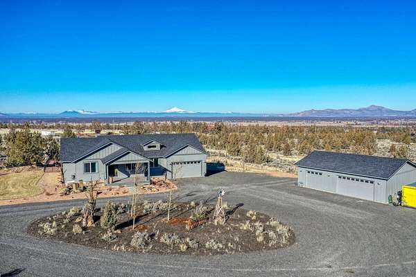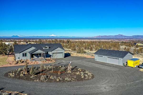 Est $5,899/moPristine Cascade Mountain Views on 4.83 acres from this newer construction, builder's own home located in Powell Butte. There is a 26 x 40 fully insulated 3 bay shop with 220 AMP service in addition to a 2 car garage attached to home for a total of 5 covered parking spaces. Plenty of RV parking. Backyard is fenced with professional landscaping. The heat pump provides heating in the Winter and cooling in the Summer. Wood burning fireplace to keep the family room warm and cozy. House has 3 expansive bedrooms and a den. There is an additional bedroom and bath with a separate entrance off the back deck for guests.