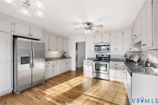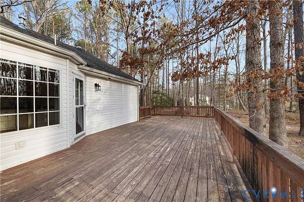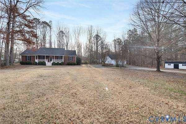 What an incredible opportunity to own 3 acres of beautiful land in Amelia County, complete with a highly sought-after one-level brick ranch home offering 1,740 square feet of comfortable living space. This thoughtfully designed home features 3 spacious bedrooms and 2 full baths, along with a designated bay window breakfast area overlooking the stunning acreage. The enormous living room boasts vaulted ceilings and solar tubes that fill the space with natural light. Recently refinished hardwood floors run throughout the main living areas, and the entire home has been freshly painted. Elegant crown molding and chair rail detail enhance the dining room, with chair rail continuing into the living room for added character and charm. The kitchen is equipped with granite countertops, abundant cabinetry, and a cozy eating bay area overlooking the expansive 16X36 deck, perfect for entertaining guests or simply enjoying the peaceful backyard views. Outside, the property truly shines. The massive front yard features a wrap-around driveway, and in the springtime, the blooming trees create a breathtaking setting. The front porch is the ideal spot to relax and take in all the beauty that country living offers. Low-maintenance vinyl porch rails add extra peace of mind. As if that weren't enough, the property also includes an impressive 1,280-square foot finished garage fully conditioned with HVAC and heat accommodating 4+ vehicles and offering incredible flexibility for hobbies, storage, or a workshop. This home has been the backdrop for years of cherished family memories, and now it's ready to welcome its next chapter.