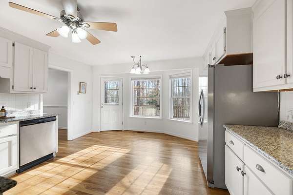 Don't miss out on this PRICE IMPROVEMENT! Welcome to peaceful COUNTRY LIVING on THREE beautiful acres in Amelia County, offering some of the LOWEST TAXES around. This one-level brick ranch features 1,740 SQFT of living space. Inside, you'll find 3 spacious bedrooms and 2 full baths, along with a bright bay window breakfast area perfect for starting your mornings while enjoying views of the surrounding acreage and 16x36 DECK. The expansive living room showcases timeless HARDWOOD floors, a vaulted ceiling, gas fireplace, and solar tubes that flood the space with natural light. The formal dining room features crown molding and chair rail, which continues into the living room for a cohesive look. The kitchen offers granite countertops, generous cabinetry and a gorgeous view of the backyard. A standout feature of this property is the 1,280-square-foot DETACHED, FULLY CONDITIONED FOUR+ CAR GARAGE with HVAC and heat. Whether you need space for a workshop, hobbies, storage, events, or recreational vehicles, this versatile building offers endless possibilities. Enjoy THREE ACRES at your leisure, perfect for gardening, growing your own fruits and vegetables. Come check out this beauty!