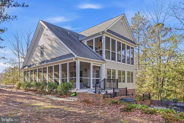 Tucked away off a private lane in the intimate Oyster Shell Landing community, this totally customized waterfront estate offers serenity, scale and incredible craftsmanship. Introducing 9287 Oyster Shell Lane in King George! This breathtaking residence sits on over 10 acres with 180-degree water views and includes four bedrooms, three-and-a-half baths and nearly 5,500 square feet of thoughtfully designed living space. It's complemented by two (yes, two!) two-car attached garages. With just eight homes in its HOA, Oyster Shell Landing is a quiet enclave where the association maintains the subdivision and private road, as well as a community boat ramp and dock available from dawn to dusk. The approach feels like a total countryside retreat - expansive acreage stretches across the front yard, wildlife abounds and herds of deer, wild turkey and even nesting eagles can be part of the daily backdrop. Privacy was paramount in the home's design, and it shows! Out back, the setting becomes truly extraordinary. The environmentally protected landscape, in compliance with the Chesapeake Bay Act, unfolds toward a scenic point via a private trail. From the Trex deck and screened-in porch, you'll take in sweeping creek views and pleasure boats drifting by. Professionally designed landscaping enhances the natural beauty, while a whole-house generator and elevator servicing all three levels add both peace of mind and everyday ease - wow! Inside, custom woodworking defines the home's character. Wide-plank cherry floors span the main and upper levels, complemented by upgraded baseboards, wainscoting and detailed trim. The kitchen is a showpiece, featuring leather-finished black granite counters, Sub-Zero and Wolf appliances, a built-in full refrigerator and full freezer, pot filler, pull-out spice rack, pantry with built-ins and a custom cherry china cabinet that conveys! Pendant lights illuminate the island; a chandelier anchors the dining area and the adjoining sunroom and living space capture stellar water views. A mudroom nook includes dual closets and durable tile flooring - just off it is a tiled ramp to the main level garage. Upstairs, the primary suite stretches across the width of the home, offering a private screened porch, generous sitting area and an expansive walk-in closet. The marble-clad bath features radiant heated floors and custom vanities. The upper-level laundry room adds convenience with a stackable unit, sink, mini-fridge and microwave. The lower level has engineered wood flooring, a tiled bath with Virginia Soapstone counter and backsplash, two bedrooms (one is currently used as a gym with rubber flooring!) and a remarkable 10-by-40-foot storage room. Don't forget, there is a hall to that second attached garage! Systems have been meticulously maintained with quarterly service, including an American Standard heat pump with propane backup and a Rinnai hot water system. Amid its tranquil feel, the property is within 15 minutes of shopping and dining in Colonial Beach, King George and Dahlgren, less than 20 minutes to Maryland via the Harry Nice Bridge and about 30 minutes to the heart of Downtown Fredericksburg. The home is serviced by King George County Public Schools with King George Elementary, King George Middle and King George High School as its designated spots. For those seeking acreage, pristine water views, refined finishes and privacy, 9287 Oyster Shell Lane delivers a lifestyle as peaceful as it is polished. Book your showing today!