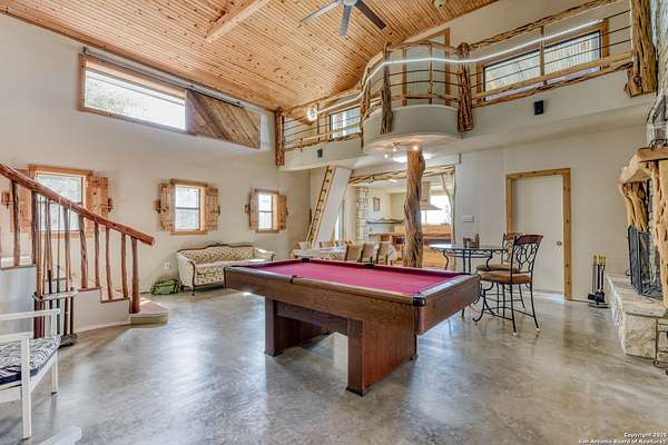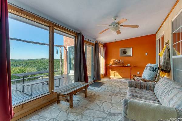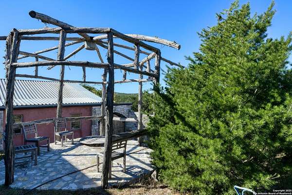 Hill Country property with home, located on a secluded hilltop between Medina and Kerrville, TX. If quiet stary nights and endless Texas skies are what you're looking for, look no further. This unique home offers plenty of space, unlimited storage and a large garage with workshop. The current owner is a skilled craftsman who has invited the hill country beauty into the home, with many custom-made cedar beams and details throughout. The main living area with high ceilings and adjacent kitchen (one of two) offers plenty of interior space for family gatherings or entertaining. Outside, enjoy your evenings on the patio while making gourmet pizzas in the outdoor pizza oven. One of the many spots on the property that offer breathtaking views of the hillside and beyond. Additionally, this home features a spacious, unfinished bonus area on the second floor, accessible from both inside and outside. Perched above the rest of the property, it offers sweeping hillside views that may be the finest on site. With limitless potential, this space could be transformed into a guest suite, game room, or an extra bedroom, whatever suits your vision.