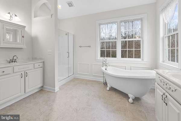 - Additional Stairway, Attic, Breakfast Area, Built-Ins, Carpet, Ceiling Fan(s), Chair Railings, Crown Moldings, Family Room Off Kitchen, Formal/Separate Dining Room, Island Kitchen, Primary Bath(s), Soaking Tub Bathroom, Traditional Floor Plan, Upgraded Countertops, Wainscotting, Walk-In Closet(s), Walk-In Shower Bathroom, Window Treatments, Wine Storage, Wood Floors