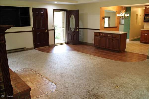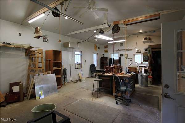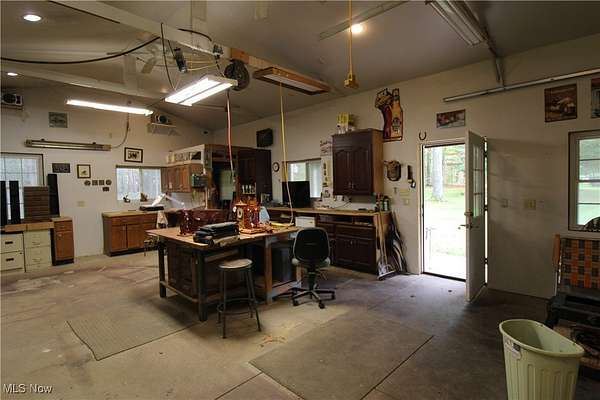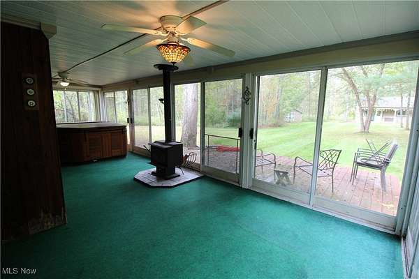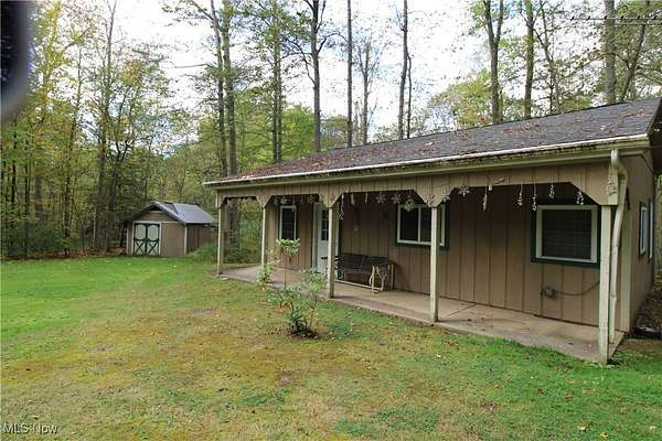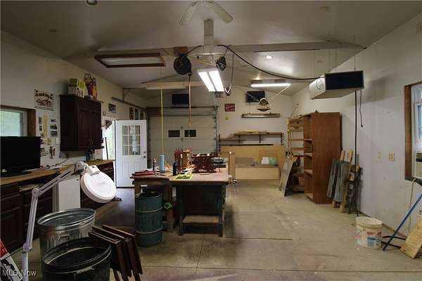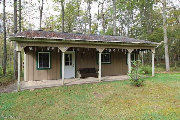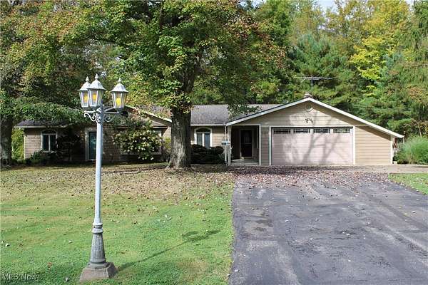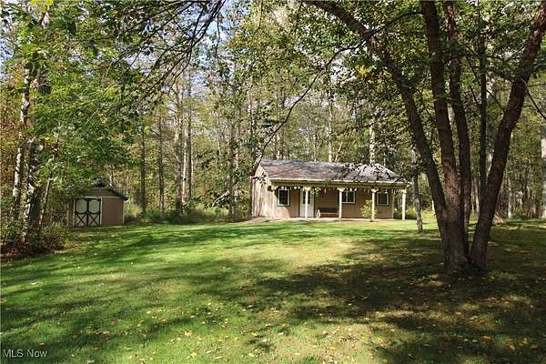 Who doesn't love a charming 1959 ranch nestled on 1.5 lush, wooded acres in the heart of Bainbridge Township, Kenston Schools? This 3-bedroom, 1.5-bath home offers a rare blend of mid-century character and modern comfort. The interior is waiting for your personal touches and decorating ideas. The vaulted ceiling in the family room addition with its prominent wood burning fireplace and mantle could be your spot to decompress after a hard day's work. Freshly painted in 2024, the exterior is well maintained. It has a quaint front porch area, but the peaceful views from the enclosed rear porch complete with a hot tub and wood burner, are a site to be seen. Step out onto the deck that runs the length of the enclosed porch to entertain or be surrounded by nature. The property features a heated and air conditioned 32x21 outbuilding that was constructed with a concrete floor with 2" high density foam and 4" of stone for added warmth, a 220 line, a garage bay door, and a porch with lean-to -perfect for a workshop, studio, mancave, she-shed, or extra storage-plus a 10x10 shed for added convenience for your gardening tools etc. A whole-home gas generator is the "cherry on top" and ensures peace of mind year-round. Don't miss this private retreat just minutes from downtown Chagrin Falls and the many conveniences it offers!
