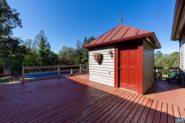 Charming historic 1900 Virginia Farm House .This property is nestled on almost 7 serene acres, offering stunning Blue Ridge Mountain views and complete privacy. With 2,724 sq ft this home has been lovingly maintained and preserved by the same family for over 45 years. It seamlessly blends timeless country allure with modern amenities. Flooring is original wormy Chestnut. In the 1980s, the home underwent a complete restoration. It features two screened-in porches, each offering unique views, a large sundeck perfect for enjoying nature, and a covered front porch for relaxing. Several outbuildings and a whole-house generator provide added comfort & convenience. Beautiful inground pool. The property also includes a huge barn with exciting potential, whether for a workshop, an event space, or for selling its reclaimed wood. This farm offers a dream for history buffs or those seeking a tranquil rural retreat. Its proximity to Nelson County's orchards and wineries, and Charlottesville's vibrant scene makes it perfect for a primary residence, a vacation home, or even a bed-and-breakfast catering to tourists. With some cosmetic updates, this lovingly cared-for farmhouse will truly shine as a modern classic. .