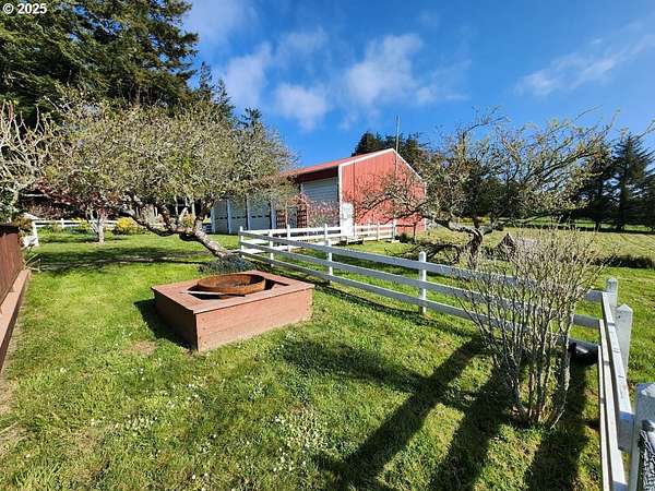 Exceptional 3-acre property featuring a Massive 5-bay Shop with loft, perfect for equipment storage and workspace. Whether you're a craftsman, collector, or entrepreneur, this versatile structure is a standout feature you won't want to miss. The property also includes a well-maintained 4-bedroom, 2-bath home with warm hardwood floors throughout and a welcoming wrap-around covered porch, ideal for enjoying sweeping Ocean, Mountain and pasture views. Designed for functionality and rural living, the acreage is fully fenced and cross-fenced with established pastures ready for livestock. A mature Orchard with apple and plum trees compliment the greenhouse amongst them. Additional shed for chicken coop or storage. Located just down the road from the renowned Cape Blanco Lighthouse and State Park, this property combines Coastal Beauty with usable land and exceptional infrastructure.