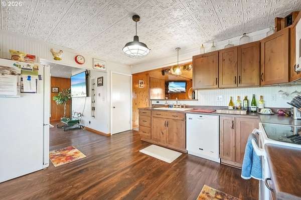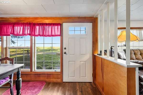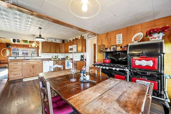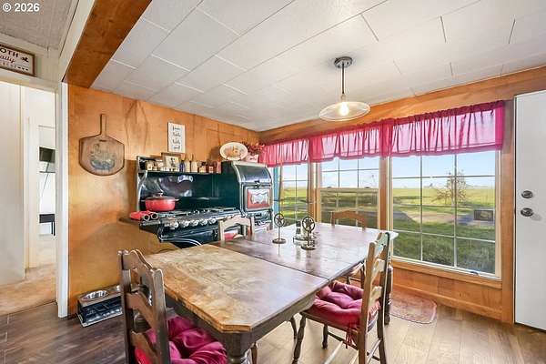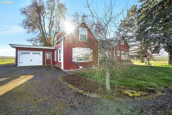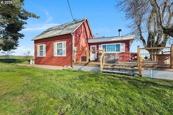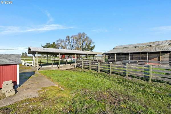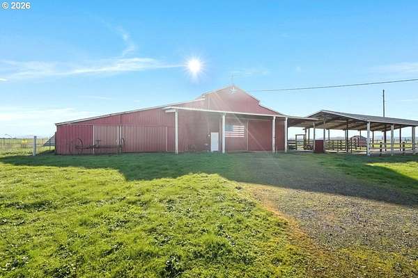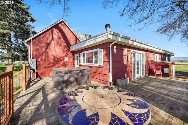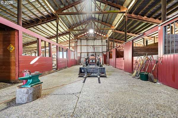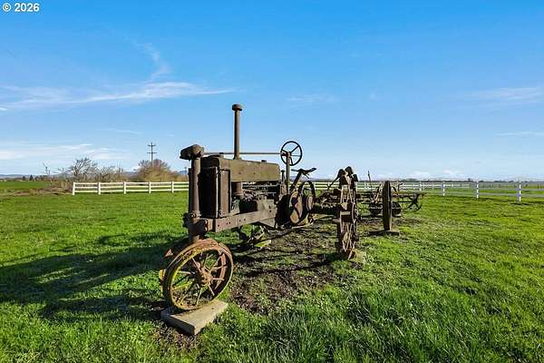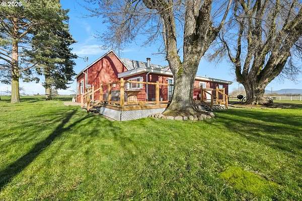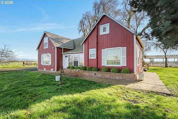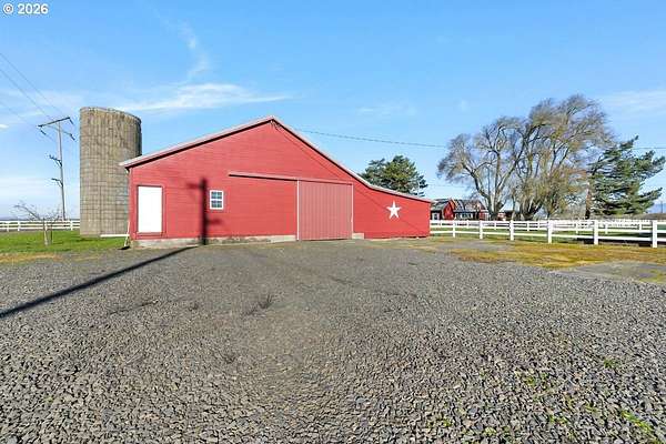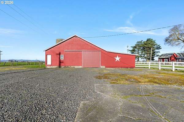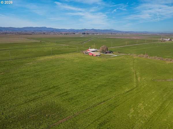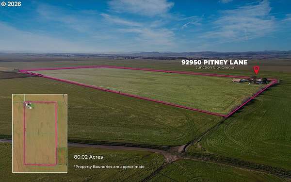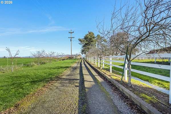 Set on approximately 80 acres in close proximity to Junction City, this fully fenced and gated farm offers a combination of income production, privacy, and versatile agricultural infrastructure. The farm ground is currently leased through the 2026 crop season, providing immediate income while preserving future flexibility for owner-operators or investors. The property features up to 28 acres of water rights and is presently planted to grass seed. Productive Coburg and Awbrig soils (per USDA Web Soil Survey) support a wide range of agricultural uses, including continued seed production, pastured livestock, and equestrian operations. The land has also historically been utilized as a small dairy. The charming farmhouse is positioned to take advantage of sweeping territorial views and has been carefully updated while preserving its classic farmhouse character. A new Quadrafire 1200 pellet stove valued at $5,000, and rated for 2700 sq ft has been installed. Outdoor living is enhanced by a large deck, landscaped backyard with established garden beds and assorted fruit trees - creating a peaceful, private setting ideal for everyday living or entertaining. Two substantial 60' x 80' barns provide exceptional functionality. One barn has been retrofitted for equestrian use and includes five 15' x 13' horse stalls, a tack room, and ample working space, making it ideal for equestrian enthusiasts. The second barn serves as a shop and equipment storage facility, well suited for farm operations or additional business uses. Covered RV parking with electrical hookups adds further convenience for guests or travel. This well-rounded farm presents an outstanding opportunity for continued agricultural income, equestrian pursuits, or a private rural lifestyle just minutes from Junction City. Combining productive ground, quality improvements, and a beautifully maintained homestead, this property offers both immediate returns and long-term potential.