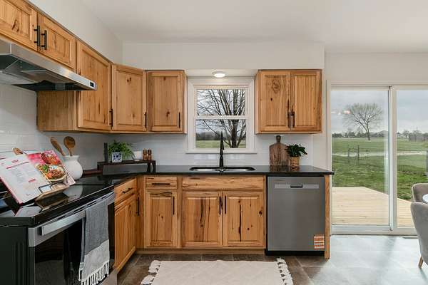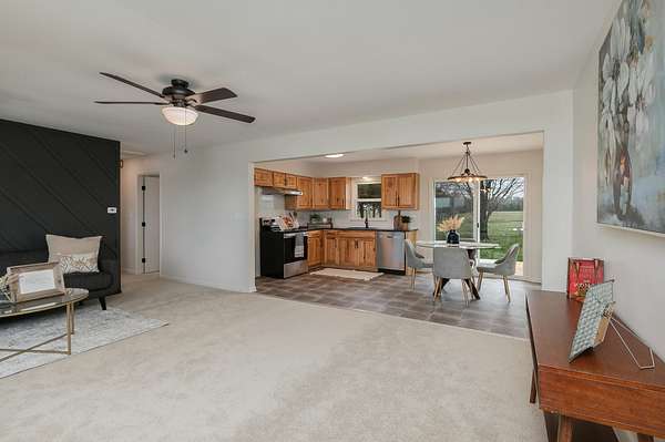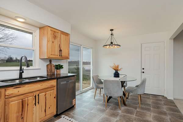 Enjoy peaceful country living with this remodeled three-bedroom, one-bath home situated on 5 beautiful acres. Inside, you'll find fresh updates throughout, creating a move-in-ready space with a comfortable and inviting feel. The living room features a stylish accent wall and open floorplan, leading to the beautiful eat-in kitchen. This home offers new flooring, paint, and fixtures throughout. Both the kitchen and bathroom have been updated. New roof for peace of mind!Step outside and take in the open acreage complete with a pond, adding charm to the property and offering a great spot to enjoy the outdoors. A major highlight is the impressive 48x30 shop, ideal for hobbies, storage, or business use. The shop features electric, a concrete floor, and three overhead doors--including a 15-foot door for larger equipment or vehicles. It also has separate metered 220 electric, is foam insulated and heated, providing excellent functionality for a workshop setup.With updated living space, acreage to roam, a pond, and a versatile shop building, this property offers the perfect blend of comfort, space, and practicality.