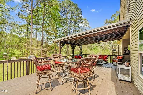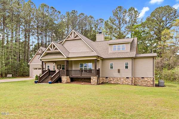 Imagine coming home to wide-open space, quiet evenings on the porch, and the freedom to live exactly the way you want. This custom-built Craftsman home sits on 3.27 acres of unrestricted land-no HOA, no rules, just room to breathe and make it your own. Inside, an open and inviting floorplan creates the perfect setting for entertaining, gatherings, and everyday living. The home offers four bedrooms and two and a half baths, including a spacious primary suite on the main floor-allowing you to live like a ranch while still enjoying plenty of room upstairs for guests or family. Light-filled living spaces are accented by timeless Craftsman charm and beautiful views of the surrounding landscape. Step outside and you'll find ample space for gardens, pets, and outdoor living, along with a newly added custom fence that's perfect for dogs. A brand-new roof (2025) provides peace of mind for years to come and lightning fast internet makes working from home a breeze. Above the garage, a private heated and cooled bonus retreat adds 437 additional square feet of flexible living space (not included in the home's square footage due to exterior access). Whether used as a home office, movie room, creative studio, or quiet hideaway, this space offers endless possibilities. With easy access to Highway 401 and a convenient commute to Raleigh and Wake Forest, this home blends peaceful country living with everyday convenience. Whether you're dreaming of privacy, entertaining, or a slower pace of life, this property invites you to settle in and stay awhile.