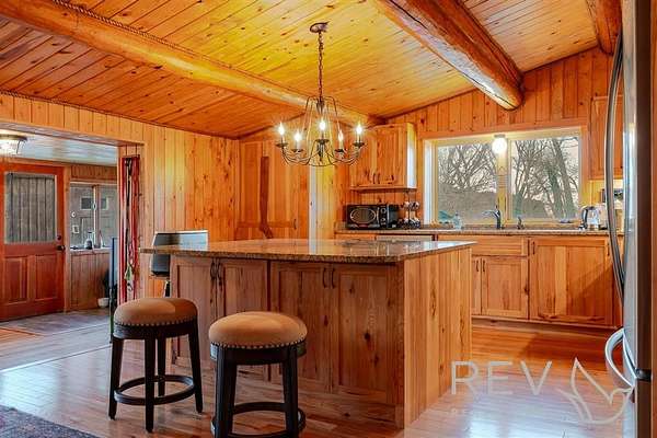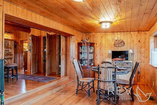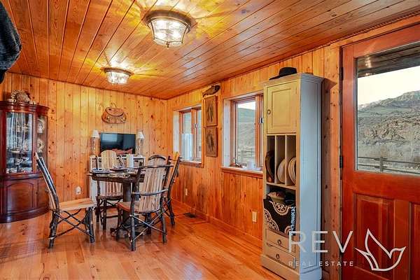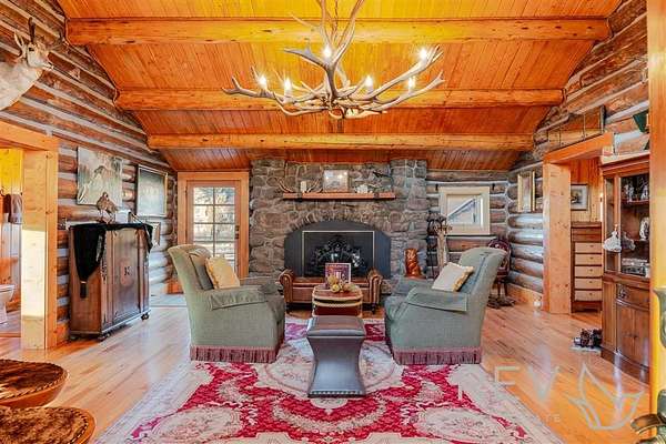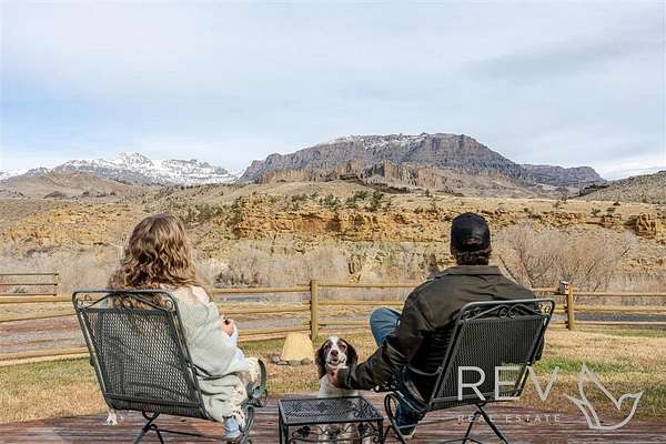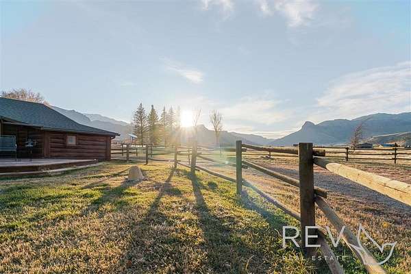 This is the dream! Grab the chance of a lifetime to own a log home with river access in a forever jaw dropping setting. Located on the banks of the North Fork of the Shoshone River, you are smack amid the rugged Wapiti Valley, where the river has sculpted one of the most beautiful locations in the United States. Dramatic scenery and wildlife will entertain you through all four seasons, making for a life adventure that never grows old. Inside, the hand-hewn log walls are warm and inviting with a lovely great room highlighted by a stunning stone fireplace and elk antler chandelier. History is captured in journal entries inscribed on the log walls by the first homesteaders. The kitchen has been upgraded with custom cabinetry, granite countertops, and an enormous island for gatherings. The master bedroom features rustic log walls, and the guest rooms are comfortable with authentic axe hashed paneling. This property blends history and modern conveniences perfectly, including maintained paved roads, extensive community water and sewer systems and an updated on-site irrigation system. The home is strategically placed thirty minutes from downtown Cody and the Yellowstone Regional Airport, and thirty minutes from the East entrance of Yellowstone National Park. Wapiti Valley offers unparalleled year-round recreation opportunities, including hunting, horseback riding, cross country skiing, hiking, boating, birding, photography and fishing!