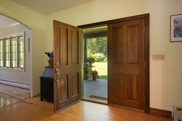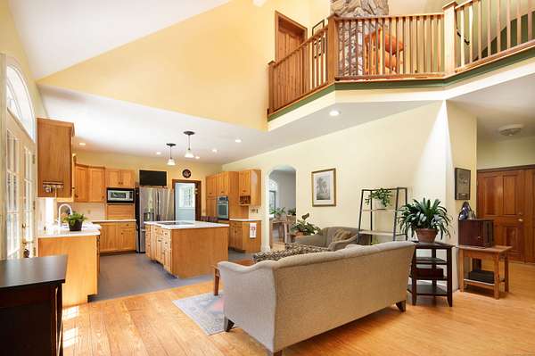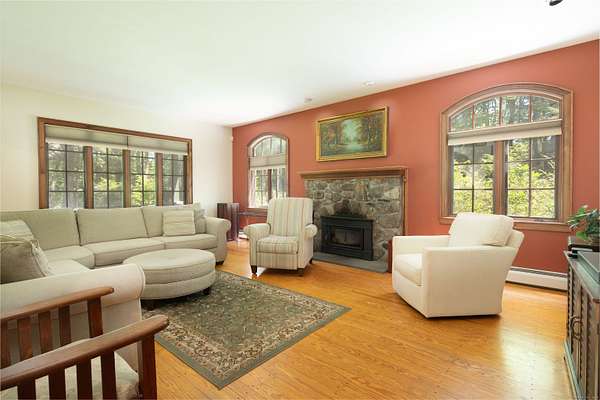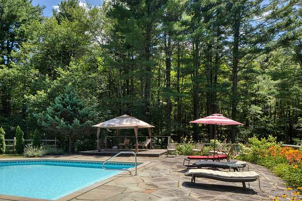 Fall colors are here and ready to be enjoyed at this spacious country retreat with pool on 10+ acres. Experience comfort, privacy, and timeless charm in this spacious 3-bedroom, 2.5-bath home set on 10 beautifully landscaped acres. With 3,182 square feet of living space, this country retreat offers hardwood floors, light-filled interiors, and outdoor amenities ideal for year-round living or weekend escapes. The first-floor primary suite provides convenience and privacy and direct access to the back deck, while the second floor includes two large bedrooms and a lofted office space-perfect for working from home or accommodating guests. The open floor plan features a warm and inviting living area with fireplace, formal dining space, and a large kitchen that flows seamlessly into a casual living space. The attached garage has extra storage, walk-up attic space and dual sided garage doors for ease of access. Step outside to enjoy seasonal gardens, a covered front porch, and a generous back deck and patio overlooking a fenced, in-ground pool-perfect for 3 seasons of entertaining. Whether you're relaxing by the pool or enjoying quiet mornings on the porch, the serene surroundings and expansive property offer the ultimate retreat. Conveniently located yet incredibly private, this move-in-ready home is ideal for those seeking quiet countryside and scenic living.