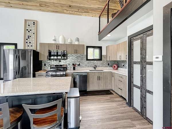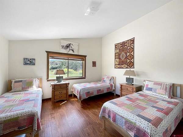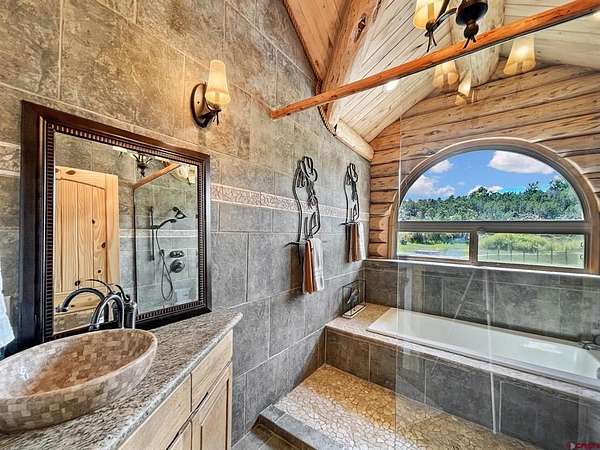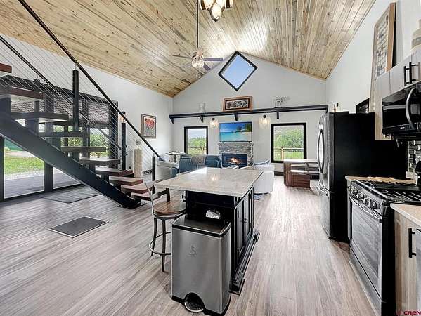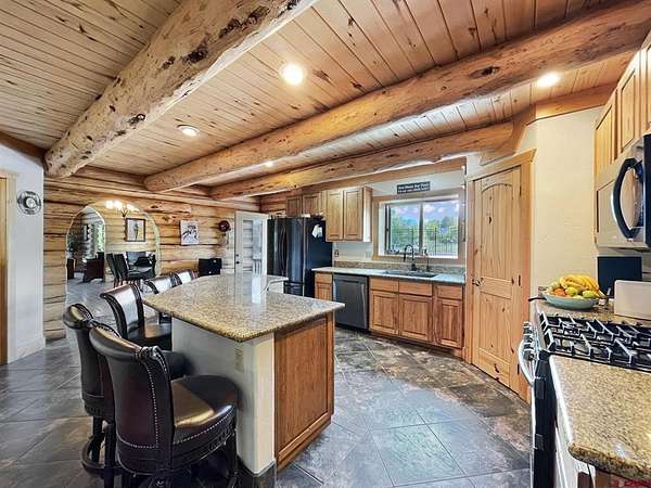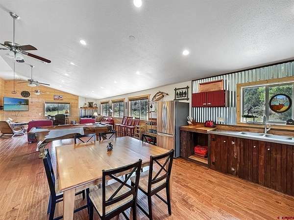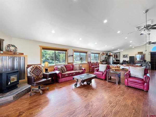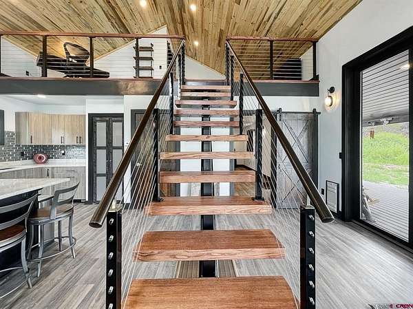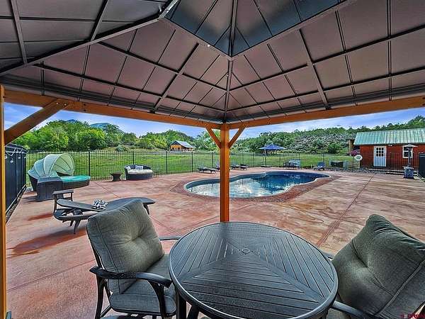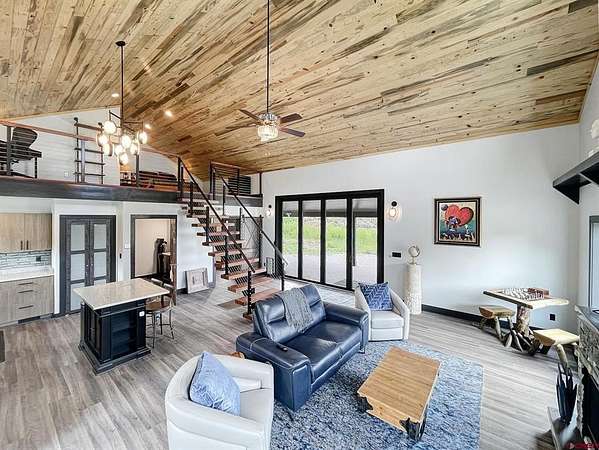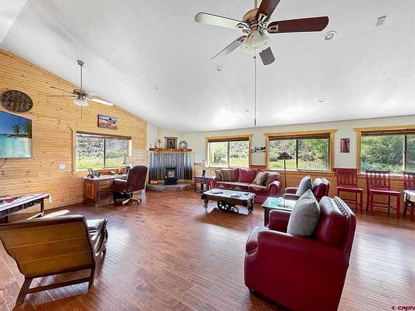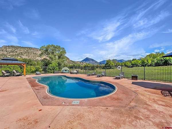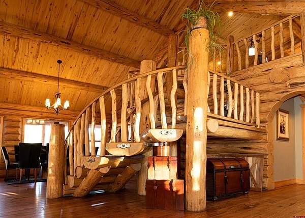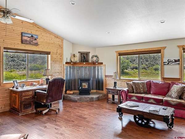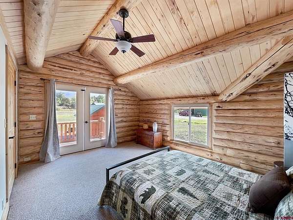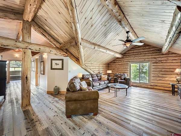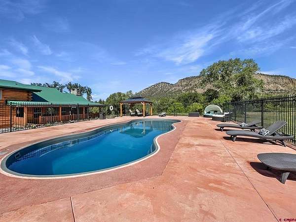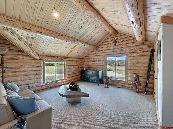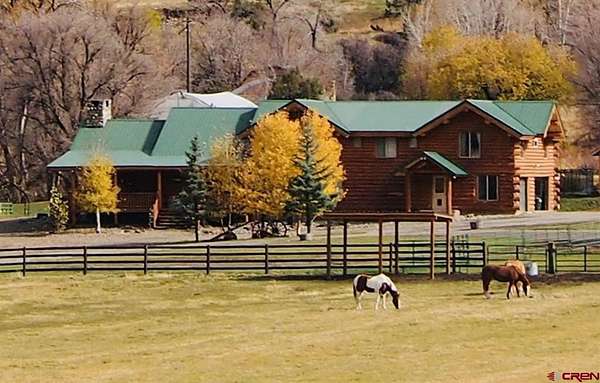 Liz Heidrick, Needlerock Mountain Realty and Land, LLC, 970-234-5344, liz.needlerock@gmail.com, http://www.needlerockrealty.com/: SHOW STOPPER! PEOPLE PULL OVER TO PHOTOGRAPH THIS PROPERTY! First: Built in 2006 CUSTOM LOG HOME! 5880 Sq Ft with the Two Car Garage, 5 bedrooms, 4.5 bathrooms, Unique Serpentine Stairs, Stunning Fireplace, HIGH END FINISHES throughout, reclaimed OAK floors, huge rooms and covered front and back porches with a TROUT POND just outside the back door. Large 16' x 40' in ground heated salt water POOL. Second: Built in 2011 HAYLOFT GUEST HOUSE! 1728 Sq Ft living unit above the 6+ Horse Stalls is currently a favorite place to stay in Crawford on AirBnB. The Loft features fabulous space to work and play remotely while enjoying a beautiful serene setting. The Great Room has a desk & chair, WiFi throughout, 83" TV, Pool Table & Games. The Kitchen/Dining area is loaded with utensils, cookware & small appliances. The separate utility room has a full-size washer & dryer. Wildlife will be seen & many outdoor activities are within close proximity. Crawford State Park is 1 mile away & The North Rim of The Black Canyon is 20 minutes away. Third: Built in 2022 NEW CABIN: 1438 sq ft of PERFECTION! So stylish and modern, yet charmingly set in the back of this incredible property. 2 Bedrooms with 2.5 Bathrooms, Laundry, Luxury Kitchen, Huge Wrap around Porch, Stunning Fire Place and Hanging Stairs, with Amazing Light Fixtures and High End Finishes. #2 Priority Irrigation Water coming out of the Smith Fork, with additional natural water that flows through the property all year feeding the ponds and giving fresh water to the horses. Custom Fencing, Million Dollar Views, Mature Trees, and nice Pasture and Hay Field. Round Pen, Barns, Hay Storage, Machine Sheds, RV/Boat Parking, and so much more. This is the ultimate Western Colorado Live and Work Property, has been guest house Airbnb in the past and can and will generate more if that is your dream. Or just multiple homes to share. SO FUN, SO CLEAN, and ready for you to come and dream a big DREAM!! This is the place that post cards are made of. Featured on more than one post card, coffee mugs, printed local art etc... All Living Areas have Air Conditioning. The RV Building is 45 Feet and has 50 AMP service hookup. Horse stalls have automatic watering in each stall, and infrared heat.