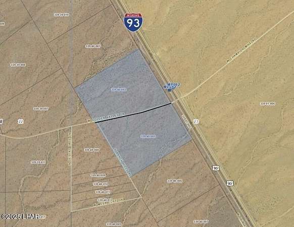 Rare 81+ acre opportunity along the rapidly growing Highway 93 corridor-soon to become Interstate 11. These two parcels, 339-40-002 (40.55 acres) and 339-40-003 (40.45 acres), offer a combined 1,698.24 feet of prime Highway 93 frontage with hard-corner access at Golden Valley Drive, one of the few designated highway turnoffs and crossovers in this entire stretch. The location provides exceptional ingress/egress and makes the site ideal for a gas station, truck stop, travel center, RV resort, industrial yard, or large commercial development. The property is currently zoned AR-36, and Mohave County has indicated support for a commercial rezoning due to the highway frontage, corner access, traffic flow, and strategic position along the future I-11 alignment. Electricity and phone are already on the property, and both parcels feature level terrain with expansive mountain views. Seller will sell parcels separately or together, and each parcel individually offers its own Highway 93 and Golden Valley Drive corner. This is one of the most unique and high-visibility properties available between Kingman and Las Vegas, positioned perfectly for future commercial growth.
