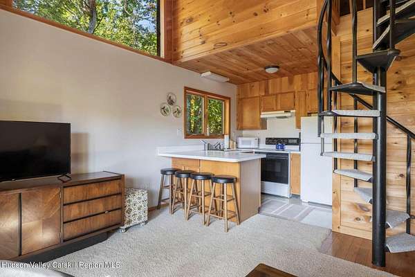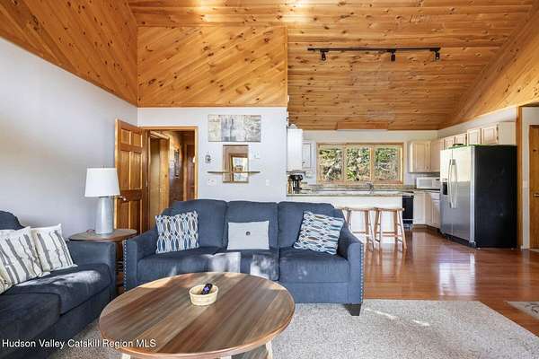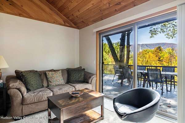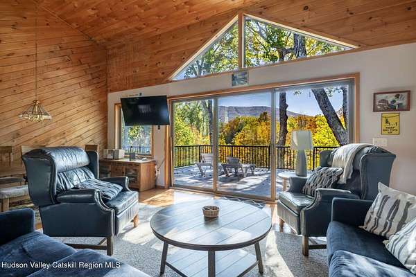 Nestled at the end of a tranquil cul -de-sac, this spacious 3+1 bedroom perched on a hill just a short distance to downtown Windham has breathtaking views of the slopes at Windham Mountain. On the main level, floor-to-ceiling glass sliding doors showcase expansive mountain views. An open-concept layout with vaulted ceilings unites the living room, dining room, and kitchen-all oriented toward the serene landscape. The master suite shares these same captivating views. Wake up to breathtaking mountain views while enjoying your coffee on the expansive new deck that spans the full length of the home, where the gentle sounds of the creek below complement your panoramic vistas of the ski slopes. The spacious finished lower level offers versatile entertainment space that can serve as a game room, office, or media room. Large windows flood the area with natural light, while ample storage keeps everything organized. Convenient direct access leads to the oversized single-car garage, plus a walk-out exit for easy outdoor access. An attached one-bedroom suite with a sleeping loft and dedicated washer and dryer provides excellent potential as a rental unit, offering additional income opportunity for the homeowner. A perfect retreat for those seeking tranquility, scenic beauty, convenience and financial advantages. Only minutes to the town of Windham where you have all the entertainment at your fingertips. Not to mention an ideal retreat for the avid skiers. Sold furnished. A 3D Walkthrough Tour is available in the digital Lookbook or by request from the listing agent.