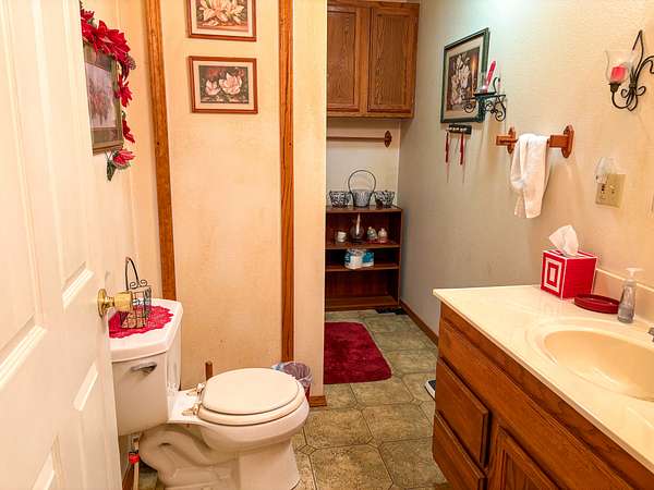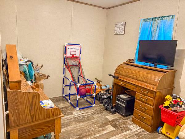 Situated at the junction of AM highway, and State Highway 181, this property has incredible location and boasts paved road frontage on 2 sides. The main house is a 2 bedroom and 2 bath home that was built in 2001. It spans 1,400 sq ft, has an open layout making the kitchen, living room, and dining rooms feel extremely spacious. Attached to the home is a 14x28 carport and just adjacent is a detached carport and a 20x24 insulated shop building. The shop has power and a garage door opener.