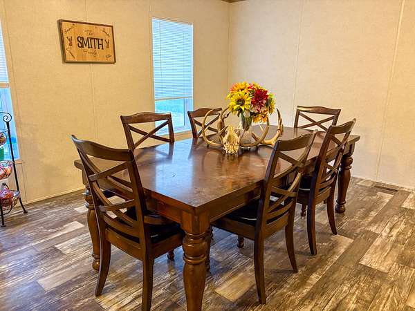 The 2nd home is a 2020 double wide offering 4 bedrooms, 2 baths, 1,404 sq ft, and has its own newly drilled well. The back deck overlooks a large meadow and faces the East making it an ideal location for drinking coffee and watching the sunrise. Both homes have their own power meters, wells, and waste water lagoons.