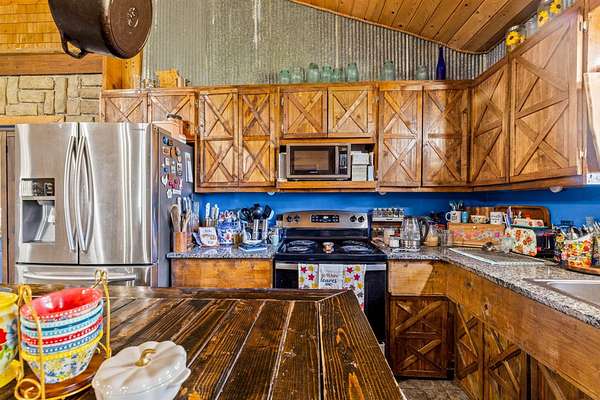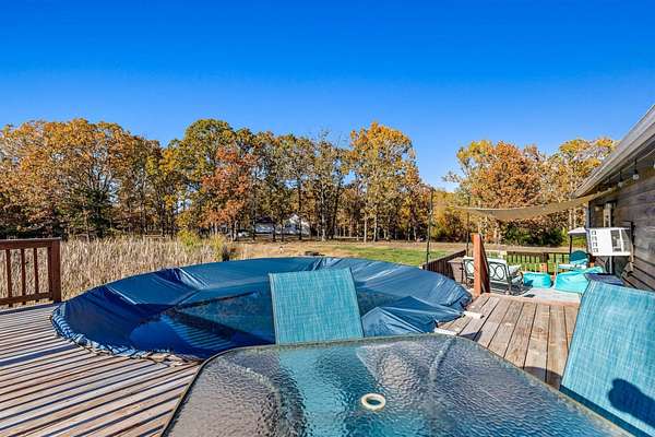 Welcome home to this 3-bedroom, 2-bath home just outside the city limits of Marshfield. Sitting on 3 level acres, this property offers the perfect blend of privacy and convenience. You'll love the 24x30 shop, peaceful pond, and above ground pool, ideal for both work and play. Step inside to an open floor plan featuring a warm rustic lodge design. The handcrafted kitchen cabinets showcase a barn-door style, complemented by granite countertops and a stunning stone island with a wood top. The living room's cozy pellet stove keeps things toasty during the winter months. Enjoy your morning coffee on the inviting front porch, then host summer gatherings on the spacious back deck. Whether you're relaxing poolside or watching the wildlife, you'll fall in love with the country charm and serene surroundings.This home is move-in ready and waiting for you to make it your own, come take a look today!