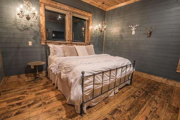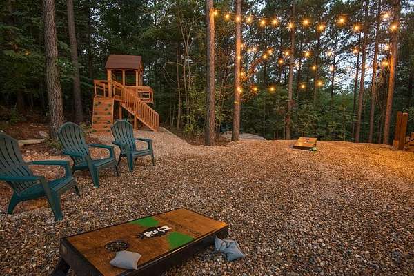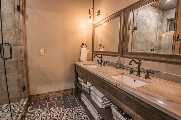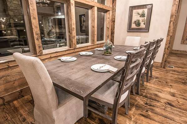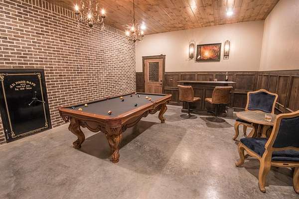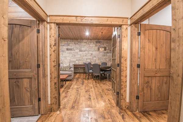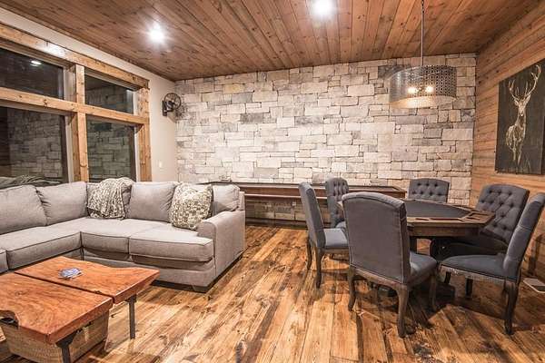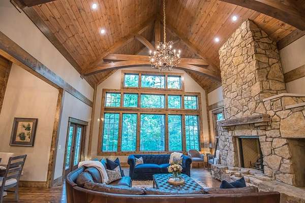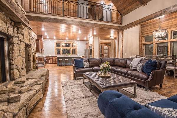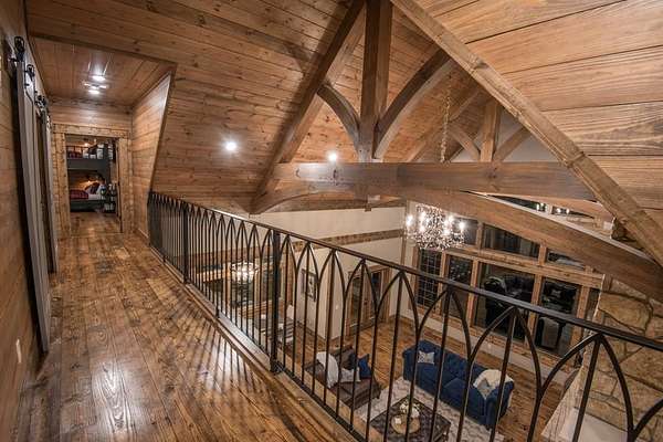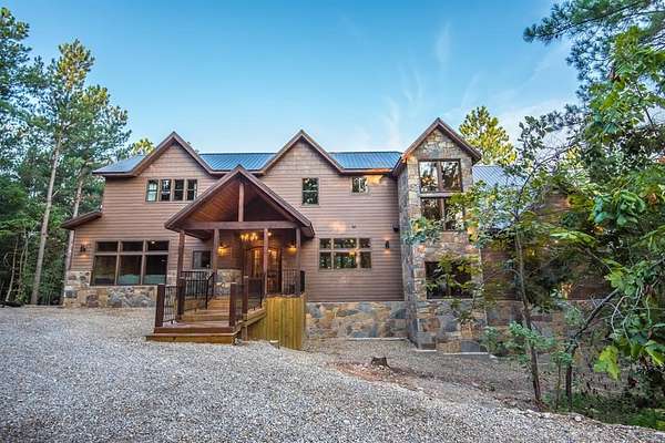 Lion and the Lamb Lodge is a best-in-class luxury STR designed to meet the expectations of the most discerning high-net-worth investors and guests. Spanning more than 5,300 square feet, this four-season retreat delivers scale, privacy, and craftsmanship rarely found in the market. Architectural details set the tone throughout, including custom oak beams sourced from North Carolina, a dramatic true stone wood-burning fireplace, and Sierra Pacific wood-clad living room windows that frame serene forest views. Designer Arhaus lighting elevates each space, while a reclaimed barn-wood ceiling in the bunk room adds character and authenticity without compromising sophistication. The expansive chef's kitchen is fully equipped for elevated entertaining, featuring a six-burner gas range, dual full-size ovens, and premium finishes throughout. Purpose-built entertainment areas maximize guest experience and booking appeal: a first-floor game room with poker table, shuffleboard, and 65" HDTV, plus a lower-level billiards bar with intimate lounge seating-strategically separated from sleeping quarters for comfort and flexibility. Sleeping accommodations include four king suites with private en-suite baths and a custom bunk room with two queen-over-queen built-in bunks, plus a total of 5.5 baths. The home comfortably sleeps 16 guests in beds, supporting strong revenue potential. Situated at the end of a quiet cul-de-sac within Timber Creek Trails, the offering encompasses the cabin on its own lot along with a rear adjoining one-acre parcel, for a combined total of two pine-studded acres. The additional lot is buildable and offers a compelling opportunity to develop a second luxury STR and expand revenue potential, or it may be retained to preserve exceptional privacy with no rear neighbors or visible cabins. The setting is tranquil, well insulated from noise. A turnkey luxury STR engineered for performance, longevity, and distinction. Reach out for the online tour or a personal tour!