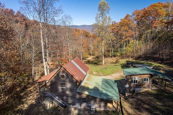 Unrestricted possibilities on this 50+ acre private estate beginning with several spacious lots with driveways and build pads. Huge mountain views and babbling branch water. Two ponds for fishing. A two bed, two bath home with hardwood floors, a large covered deck, storage space galore, and windows that bring in natural light. Bring your camper, boat and toys, there is ample space in the huge garage and workshop. Artists have a studio that is climate controlled with bathroom and storage. There is a large area for more buildings or a huge play yard, firepit, gazebo, surrounded by layered mountain views. Prime location between Sylva and Waynesville where shopping, dining, breweries, festivals, concerts, hiking, waterfalls are all nearby for your pleasure.