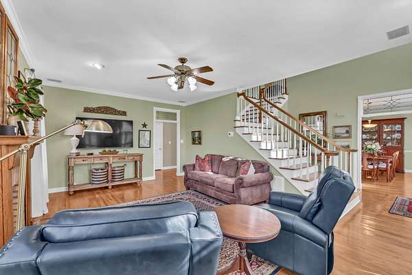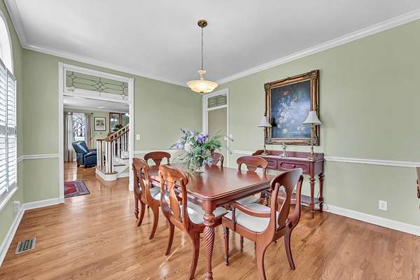 Welcome home to 930 Doe Run Ct—where timeless style meets thoughtful updates. Nestled on 1.68 acres with mature trees and standout curb appeal, this home makes an impression from the start. Step inside to a soaring entry foyer with rich hardwood flooring and elegant glass-paneled doorways. The spacious living room features a gas fireplace with brick surround, while the open kitchen offers a center island, granite countertops, pantry, bar area with mini fridge, and a generous dining nook. A formal dining room provides the perfect space for gatherings. The main level also includes a beautifully renovated powder room and a functional laundry room with sink and extra storage. Upstairs, you’ll find three bedrooms and two full baths, including a spacious primary suite with a fully renovated en suite featuring a freestanding soaking tub, tiled walk-in shower with glass doors, double vanities, private water closet, and walk-in closet. Secondary bedrooms are generously sized, each with walk-in closets, and the guest bath has been tastefully updated. The basement offers a finished flex room with walk-in closet, a two-car garage, and additional storage space. Outdoor living shines with a multi-level (4-tier) deck designed to enjoy the scenic views year-round—complete with a heater, awning, stair lights, and patio space below. Additional storage is tucked beneath the deck. Plantation shutters throughout will remain. This home has been meticulously maintained and truly cared for.