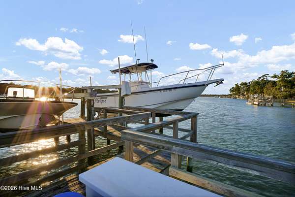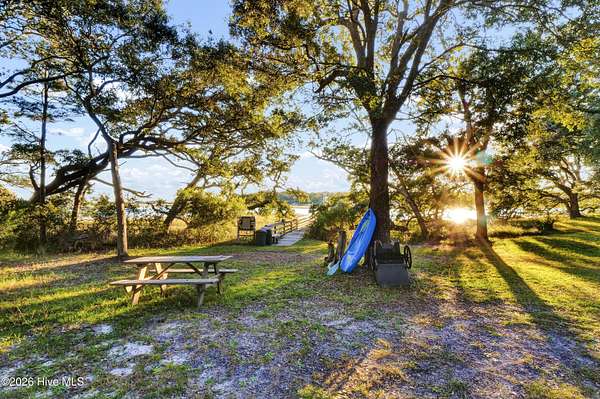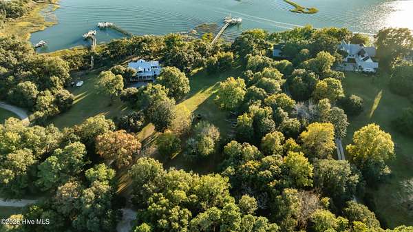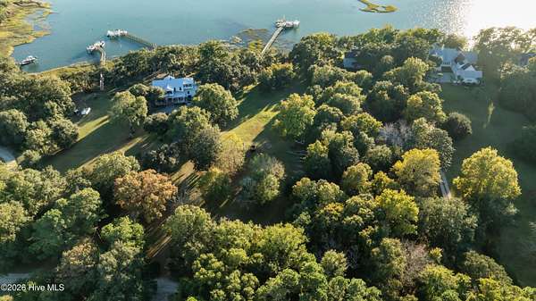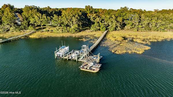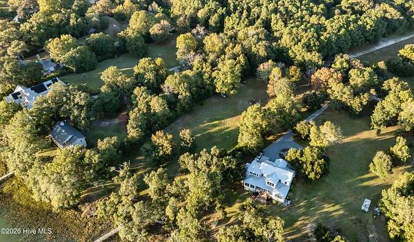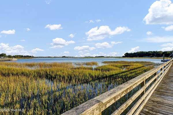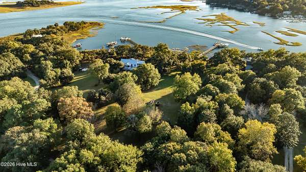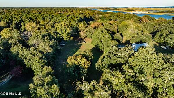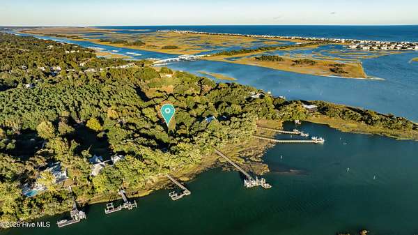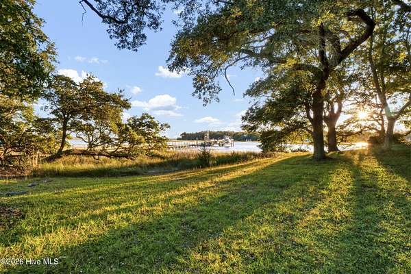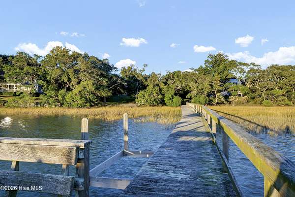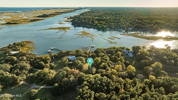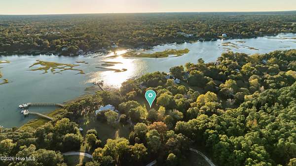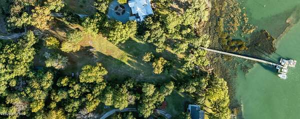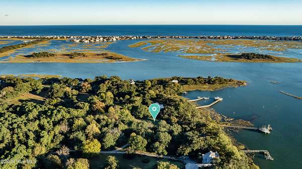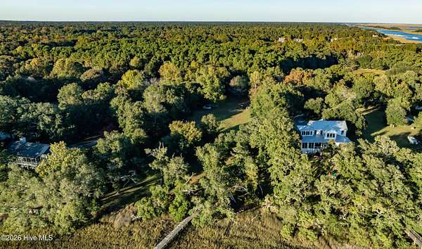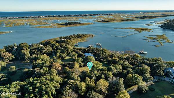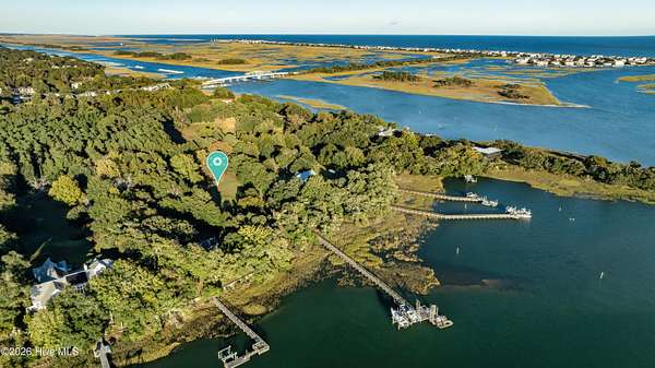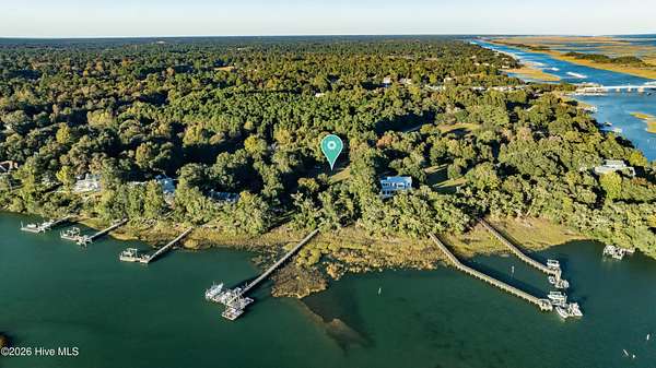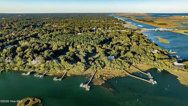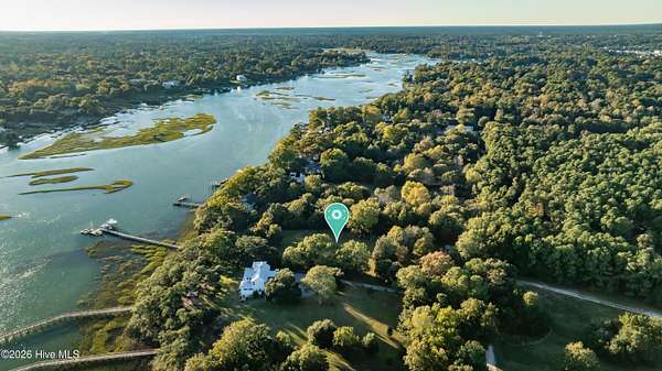 One of the areas finest waterfront tracts overlooking the mouth of Pages Creek with views of the ICWW and Figure 8 Island. The high bluff wooded knoll is tucked along an old gravel road cherished by the locals for a nostalgic step back in time. This amazing south facing property is perfectly positioned for the prevailing salt water breeze and full day sun over the tranquil water of Pages Creek. The 1.67 acre lot can be purchased as one tract but has been subdivided into 2 parcels each with water frontage and a shared pier. This one will take your breath away! When only the best will do!