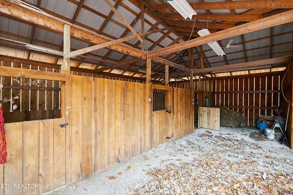 PRIVACY GALORE with your very own cabin in the woods on 3 acres plus a stable! Wilderness Resort is a gated community of homes w/ large lots that borders Big South Nat'l Recreation Area. There is direct access to horseback and hiking trails for many miles. The cabin is fully furnished and so cozy with the warmth that a cabin in the woods offers. 4 bedrooms with 2 up and 2 down. Office and dining room are also on the main level. Downstairs there is also a rec room with pool table. Outside enjoy the hot tub and checkout the barn that has 4 stalls, electric & water, heated and cooled tack room, wash bay and extra area for ATV or tractor. Swimming, kayaking, canoeing can be experienced nearby on the Big South Fork River at Camp Station. Nearby is Norris Lake, Lake Cumberland, Windrock Park, and Brimston ATV park. This home could be permanent, vacation, or overnight rental. so much to offer for price!!!
