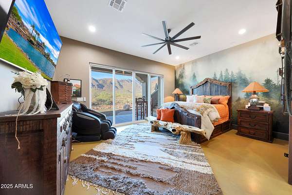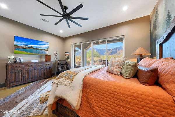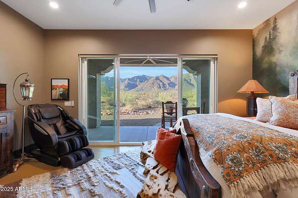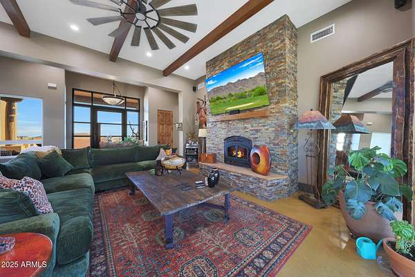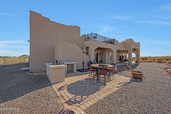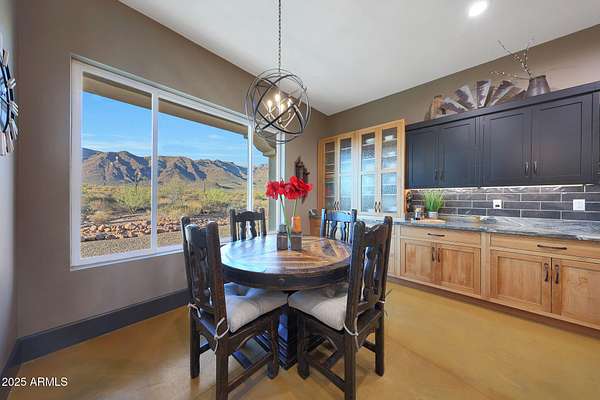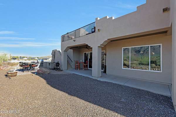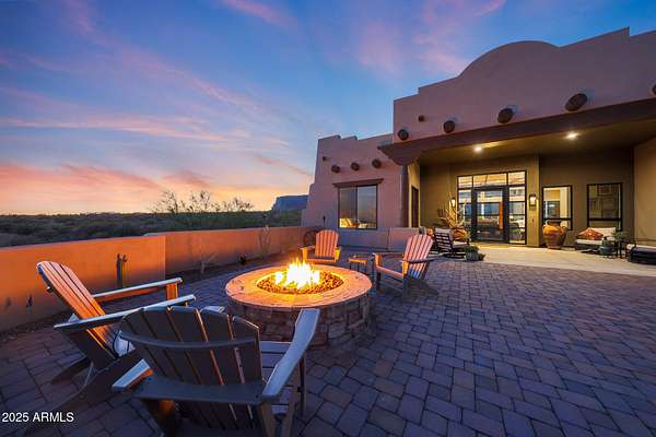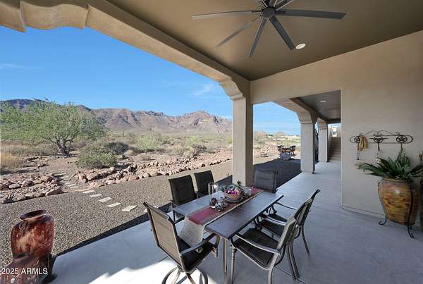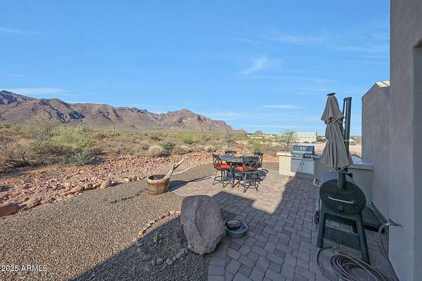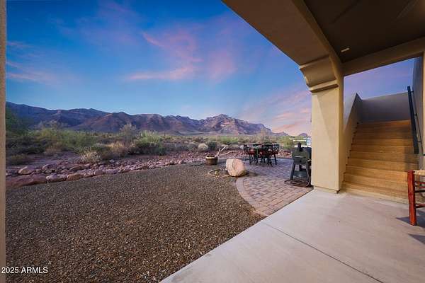Experience the best of luxury desert living in this stunning 2023-built custom home, perfectly situated on over 1.6 acres of pristine natural desert in scenic Gold Canyon. Boasting 3 bedrooms, 2.5 bathrooms, 2,067 sq ft of highly-upgraded living space, this home offers elevated design with serene privacy, unobstructed mountain views from inside and outside. Step inside the Visionmakers glass front door to discover the open-concept floorplan, gourmet kitchen featuring granite countertops, premium appliances, solid Alder wood cabinetry and interior doors, stained concrete flooring, ceiling fans, window coverings accompany rich, warm finishes echoing the beauty of the surrounding landscape. Bathrooms are adorned with handcrafted solid wood vanities & granite slab showers. Click ''more Relax by the EPA-rated fireplace framed by a custom sandstone hearth sourced from Northern Arizona. Enjoy seamless indoor-outdoor living with an extended covered patio, outdoor kitchen, and a backyard observation deck designed to take in incredible Arizona sunsets. Car enthusiasts and adventurers will love the 2 car + RV garages with solid wood overlay doors powered by industrial-grade openers, epoxy flooring, three 50-amp outlets for EV charging, air compressors etc.. 54-foot long RV garage is equipped with water and sewer connections. Additional RV hookups are available on the east side of the property. Other highlights include: surround sound wired great room, owned PRIVATE well, above-ground propane tank for gas appliances, Rustica solid wood guest suite doors leading to front courtyard, Custom courtyard gate and built-in firepit to enjoy those gorgeous sunsets! This is a rare opportunity to own a truly custom-built retreat backing up to State Trust Land with no detail overlooked, nestled in one of Arizona's most picturesque and peaceful settings.