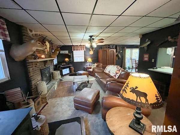 This incredible 12.09-acre outdoor retreat offers the perfect blend of recreation, privacy, and comfortable living. The highlight of the property is the beautiful 3-acre stocked pond, filled with bass, bluegill, and crappie; ideal for fishing, swimming, or peaceful evenings by the water. A boat with trailer is included, making it easy to enjoy the lake from day one. An Amish-built deer stand adds to the appeal for hunters and nature lovers alike, with mature timber and abundant wildlife right outside your door. The 4-bedroom, 1-bath home provides 1,876 sq ft of inviting space with an open layout connecting the kitchen, dining, and living areas; perfect for everyday living or entertaining. Cozy up by the wood-burning fireplace during cooler weather, and enjoy the convenience of main-floor laundry. Additional features include a triple (reverse) osmosis water filtration system, 220-amp service in the garage, and a 2-car garage with plenty of room for storage, tools, or recreational equipment. The expansive acreage offers endless possibilities; ride ATVs, explore the woods, or simply relax and enjoy the peace and beauty of rural life!