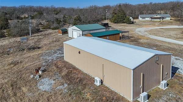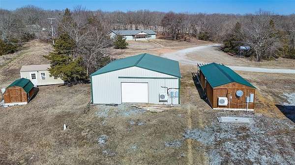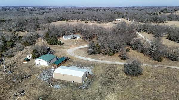 SECLUDED 40-ACRE COMPOUND WITH MULTIPLE HOMES, SHOPS, AND POND NEAR TISHOMINGO, OKLAHOMA Looking for total privacy, room to roam, and space for work-from-home or multi-generation living near Bromide and Connerville? Tucked at the end of a dead-end road in Johnston County, this gated 40-acre property delivers quiet mornings, wide skies, and the true spirit of the home-where life slows down and options open up. Set between Bromide and Connerville with a Stonewall mailing address, this fully fenced land is about 50% cleared with a pond, wildlife, and hunting potential. Morning light hits the water, evenings are still, and Amazon still finds you just fine. Wapanucka Schools add to the rare mix of seclusion and practicality. The main home, built on-site in 2014 by Sheppard Heritage Homes, offers 3 bedrooms, 2 baths, and 1,716 square feet of living space (according to county records). Kitchen appliances stay. A private well house includes a Culligan softener and high-pressure pump. Nearby, a 640-square-foot tiny home built in 2005 overlooks the pond with covered porches, two propane heaters, its own well system, and fixer-upper potential-ideal for guests, family, or income. Work and create across several outbuildings: a 30x60 insulated metal workshop (2021) with concrete floors, bathroom, mini-splits, kitchen area, washer/dryer hookups, and heavy electric-great for a home business, RV parking, or creative studio use. A 30x50 garage workshop (2015) offers drive-through access and two office spaces. A 16x40 office building (2020) with porch and bath is close to being a full guest home. Extras include a powered 12x16 shed, solar chicken coop, and an existing yurt. Utilities include three wells, three septic systems, three electric services with three-phase capability, People's Electric Cooperative, owned propane tanks filled by Miller's Petroleum, and Starlink internet option. SECLUDED 40-ACRE COMPOUND WITH MULTIPLE HOMES, SHOPS, AND POND NEAR TISHOMINGO