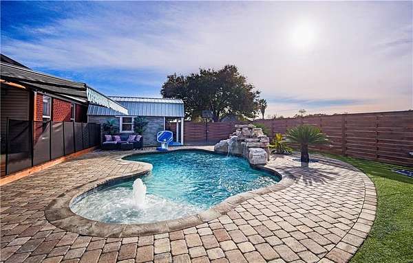 Step outside to your private backyard retreat, featuring: