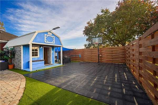 Backyard Basketball Court: Practice your free throws or enjoy a friendly game with friends and family on your very own basketball court.